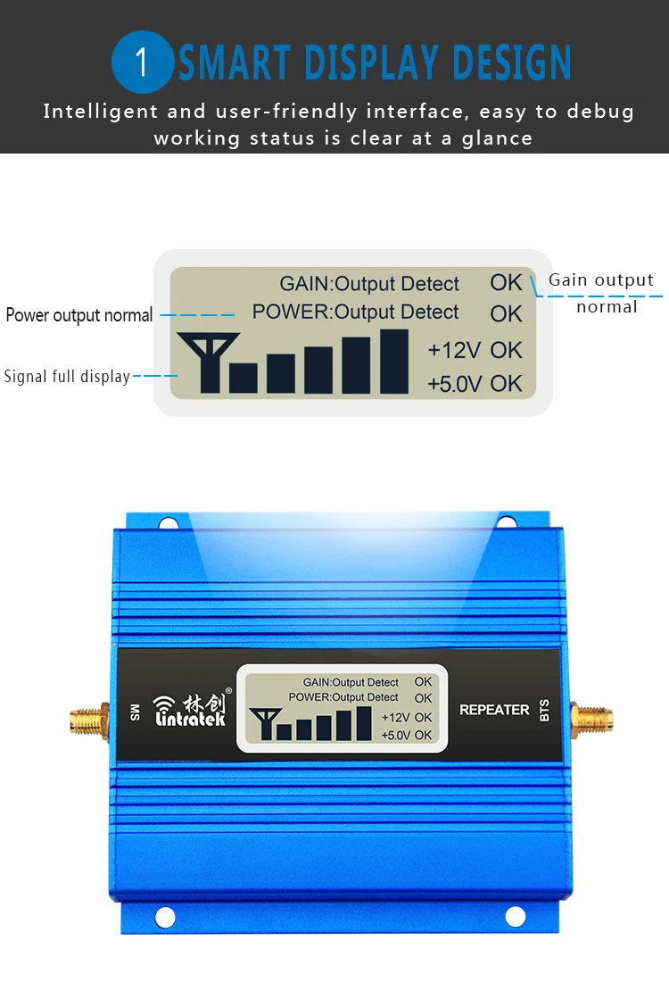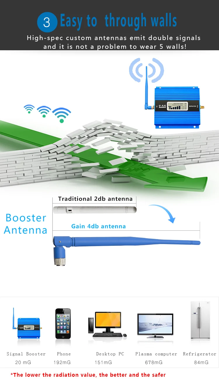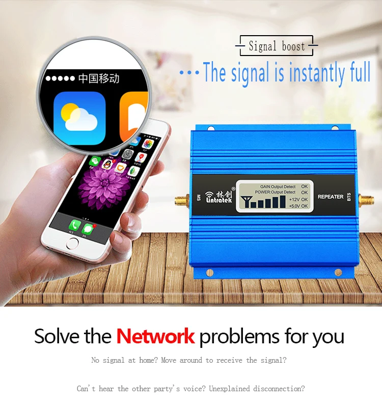 [1]. Покрытие: 100-300 квадратных метров без препятствий[2]. Улучшение 2G GSM 900mhz,3G данных 2100mhz или 4G LTE интернет 1800mhz[3]. Поддержка нескольких сотовых телефонов для одновременного использования[4]. Меньше радиации, чем мобильные телефоны![5]. Легко установить, полный комплект[6]. ЖК-дисплей и светодиодный сигнальный светильник указывают на состояние сигнала