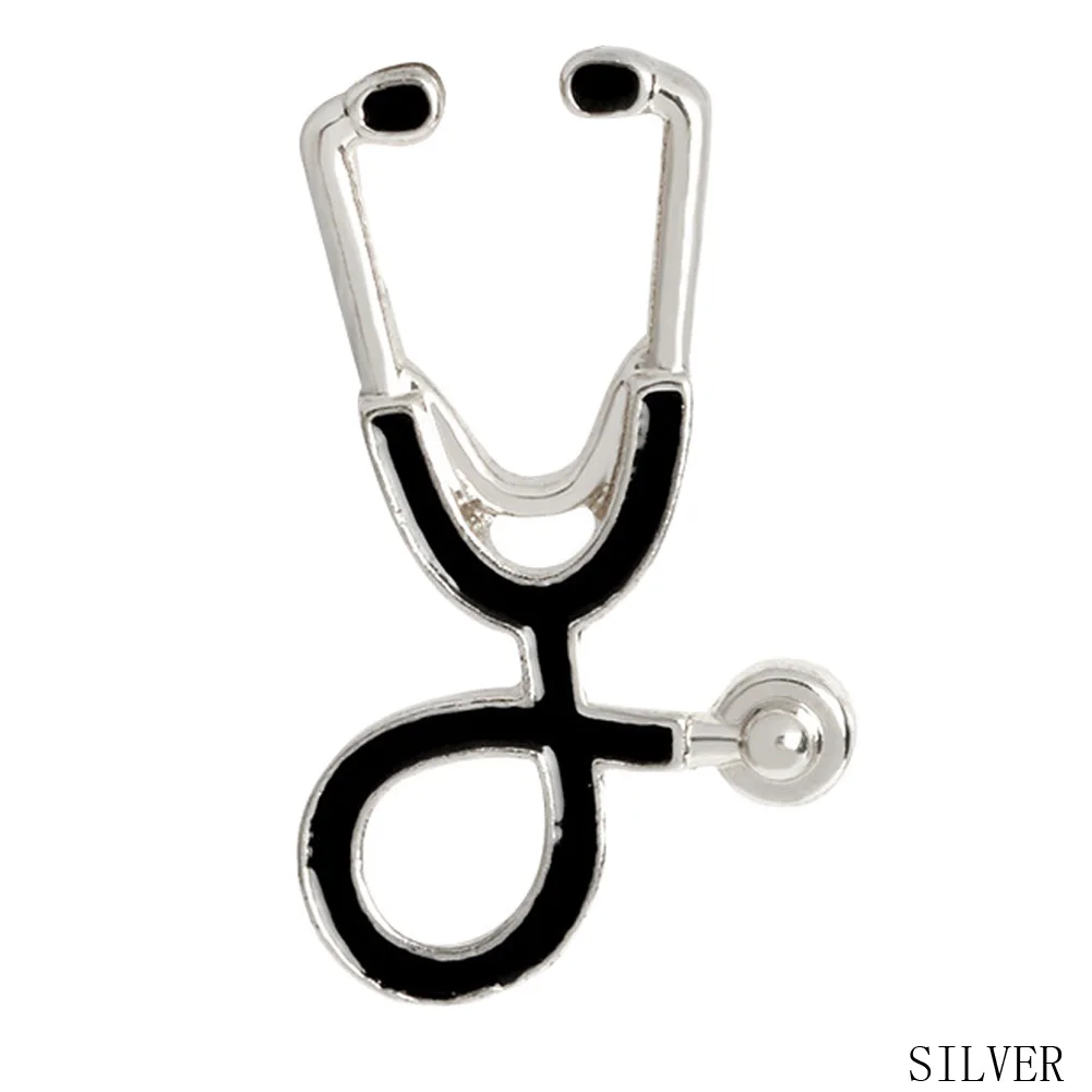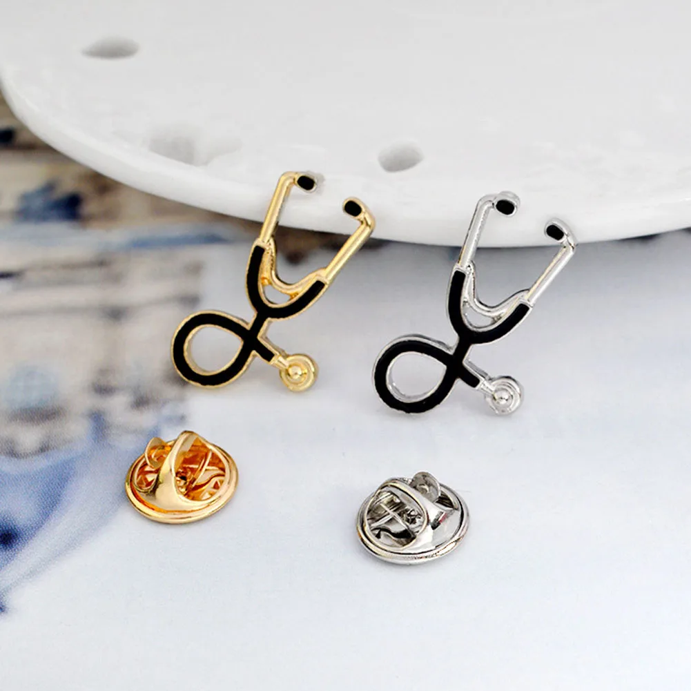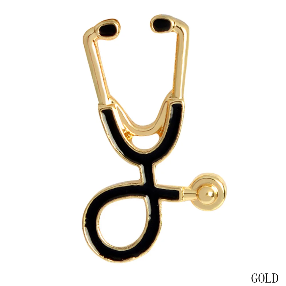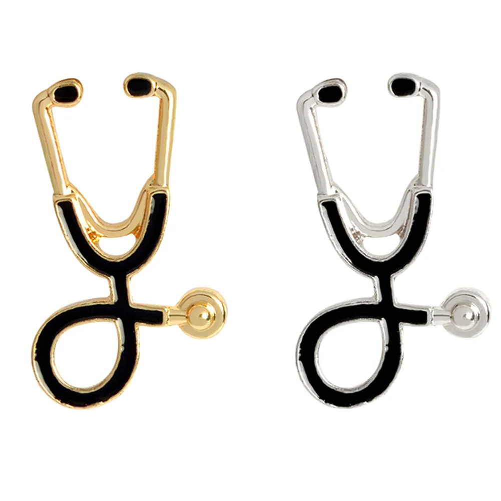 Черная брошь в форме стетоскопа, блестящие эмалированные булавки с кристаллами, аксессуары для доктора, медсестры, подарки, булавка на лацкан одежды, ювелирные изделия, подарок