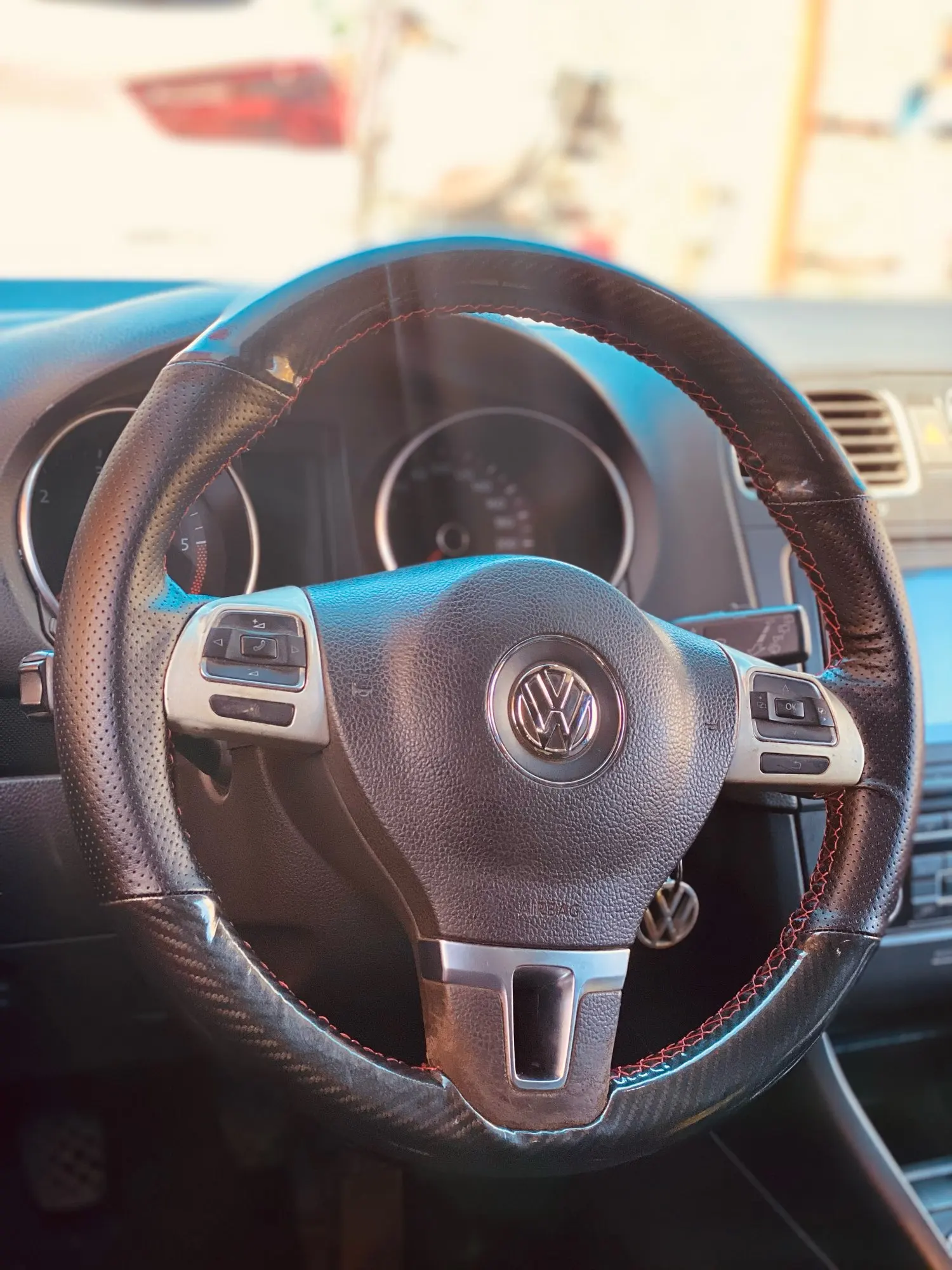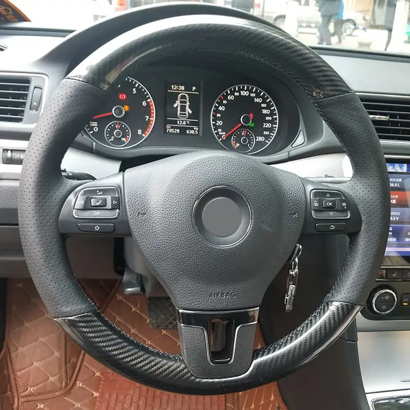 Пожалуйста, проверьте и сравните руль вашего автомобиля с рулем на картинке перед покупкой. (наши чехлы на руль являются индивидуальным продуктом, если есть какая-либо разница, она не подойдет)! Это рулевое колесо, а не руль! Этот продукт подходит для Volkswagen VW Gol Tiguan Passat B7 Passat CC Touran Jetta Mk6