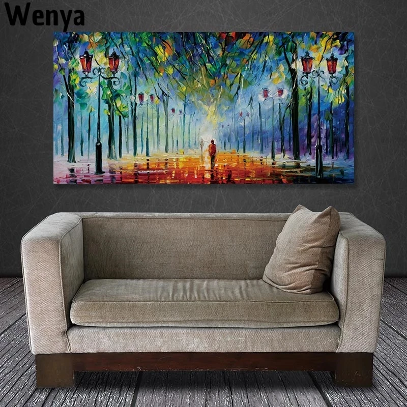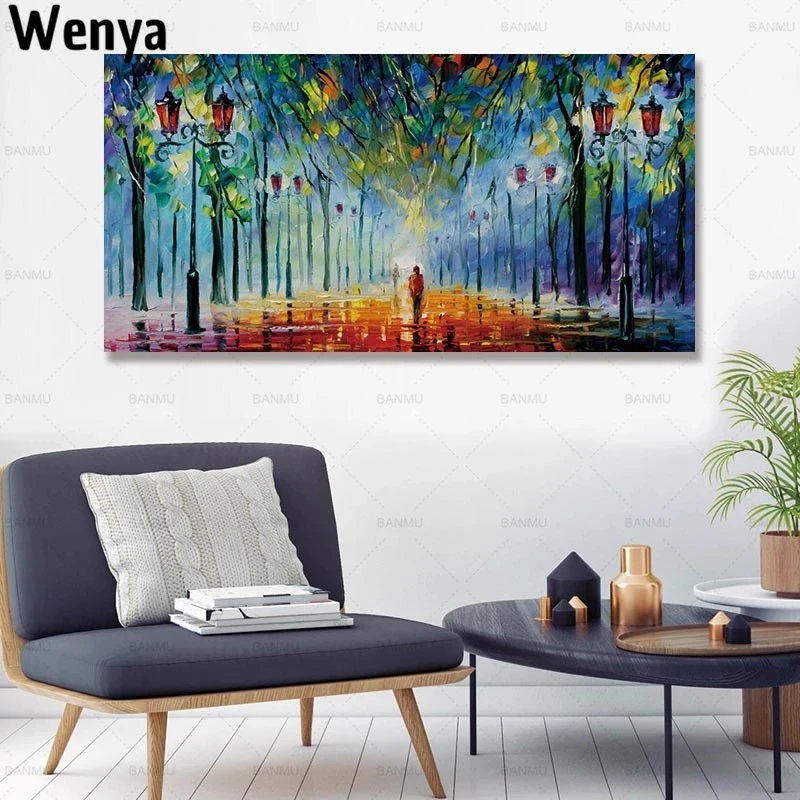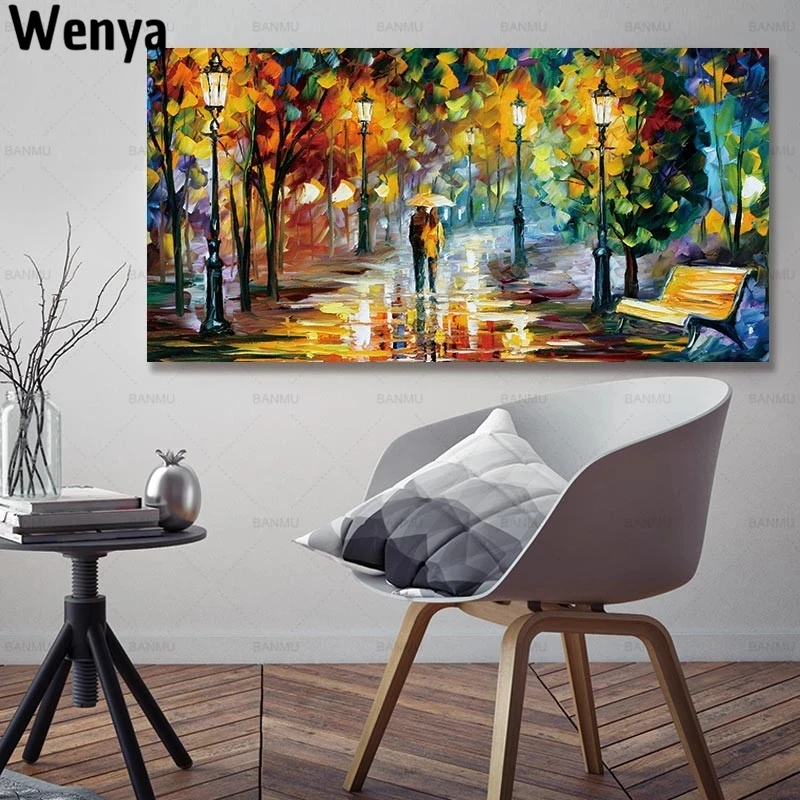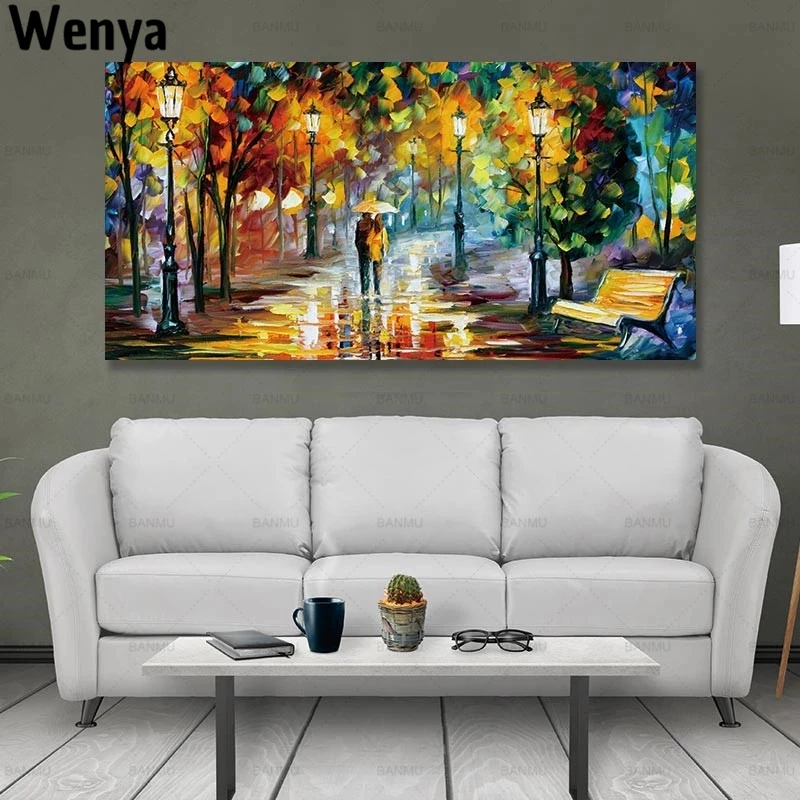 Настенная живопись на холсте, постер, абстрактный красочный фон с деревом, тропы, пары, зонты, картины, печать, украшение для гостиной