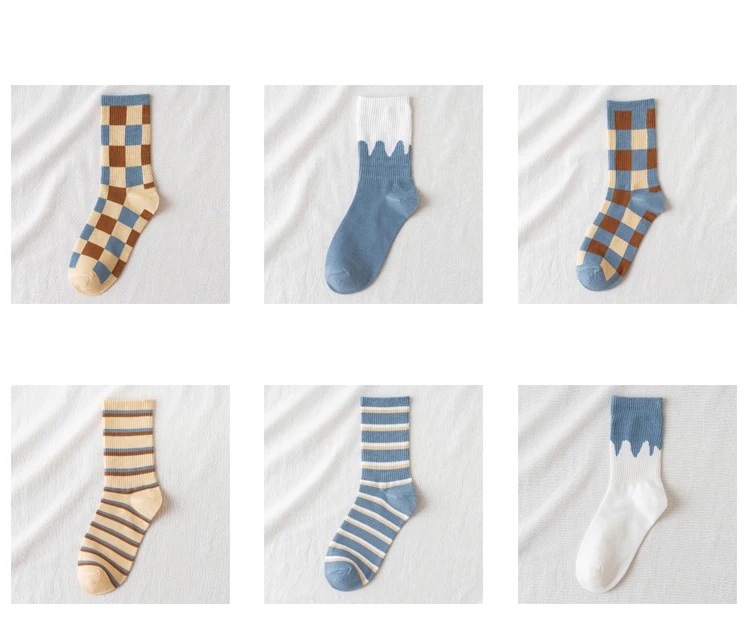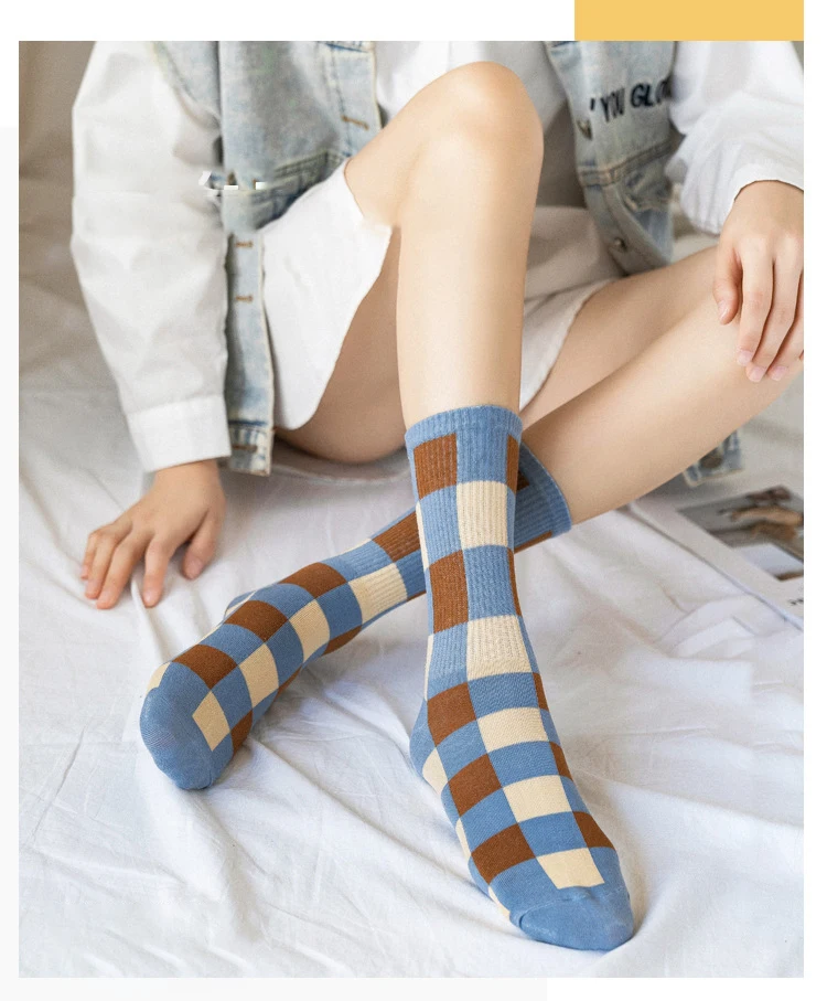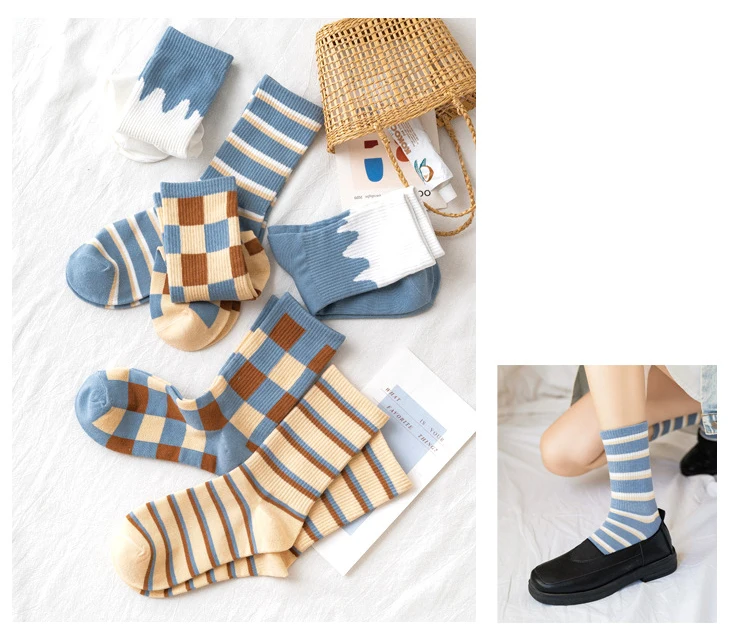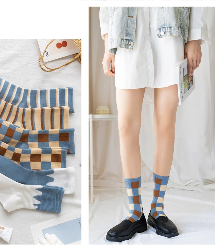 Instimeженские носки в полоску и клетку; Хлопковые носки в стиле Ха...
