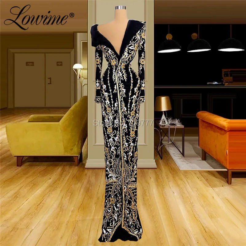 Роскошный черный Дубай Формальное женское вечернее платье 2021 Couture вышитое бисером арабское размера плюс кафтаны мусульманские Вечерние платья знаменитостей