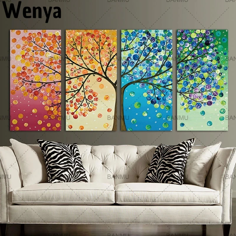 Абстрактная Картина на холсте Счастливое дерево, всесезонный настенный постер с изображением растений, настенные картины для украшения гостиной