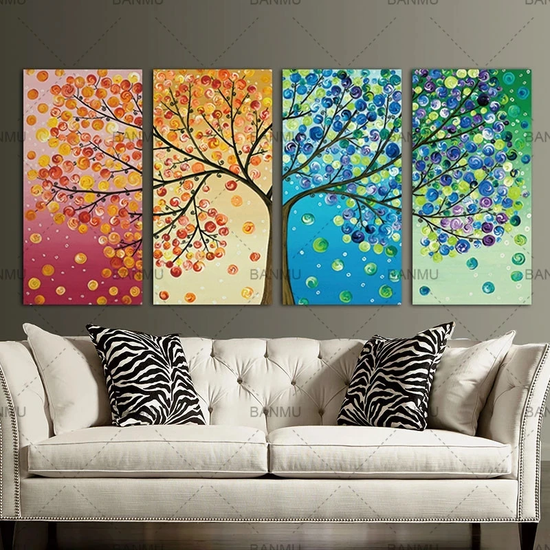 Абстрактная Картина на холсте Счастливое дерево, всесезонный настен...