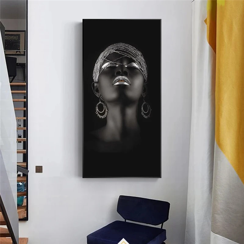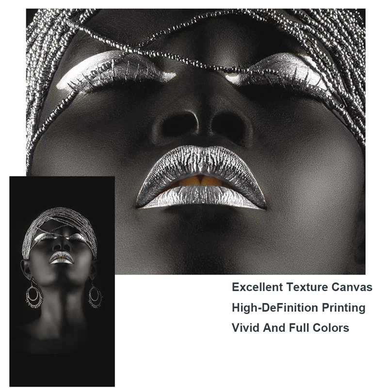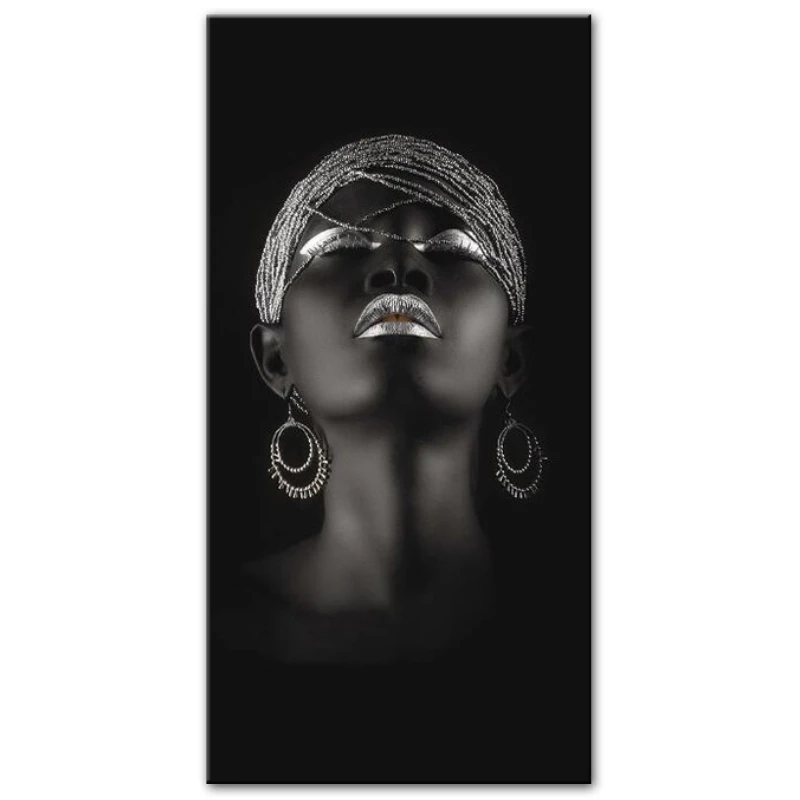 Сексуальная черная женщина с серебряными украшениями, картины на хо...