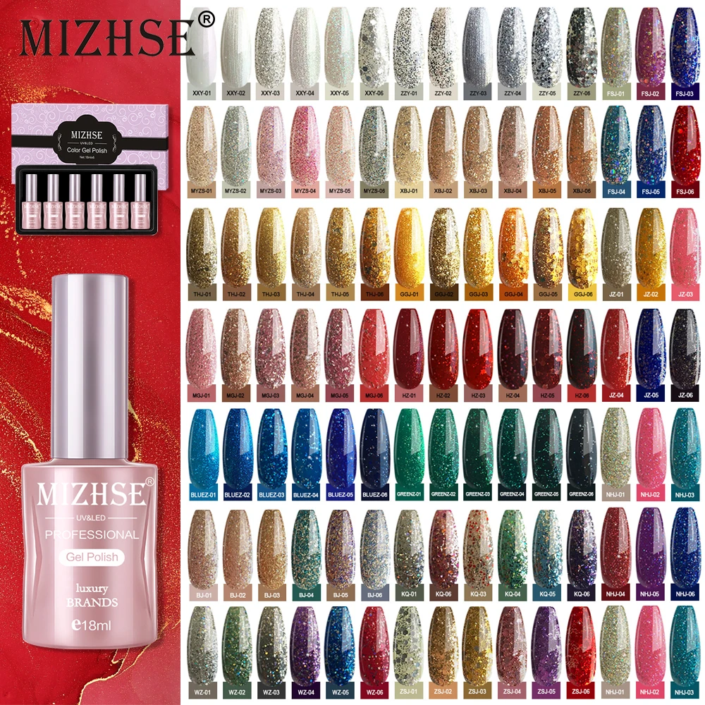 Набор лаков MIZHSE 18 мл, 6 шт., гель для ногтей с блестками, в подарочной коробке, принимаются прямые поставки