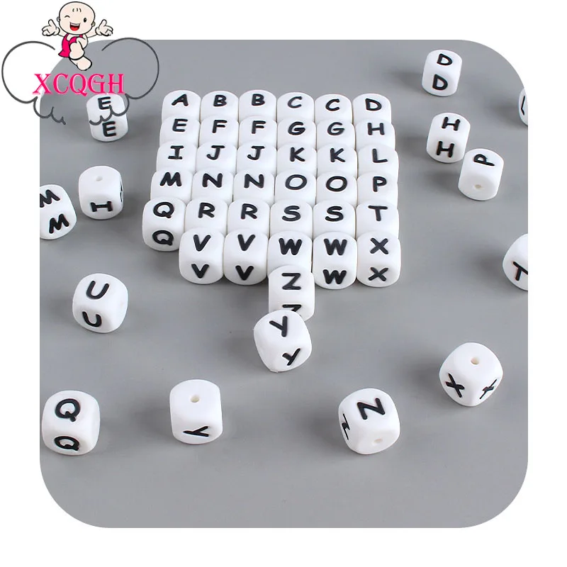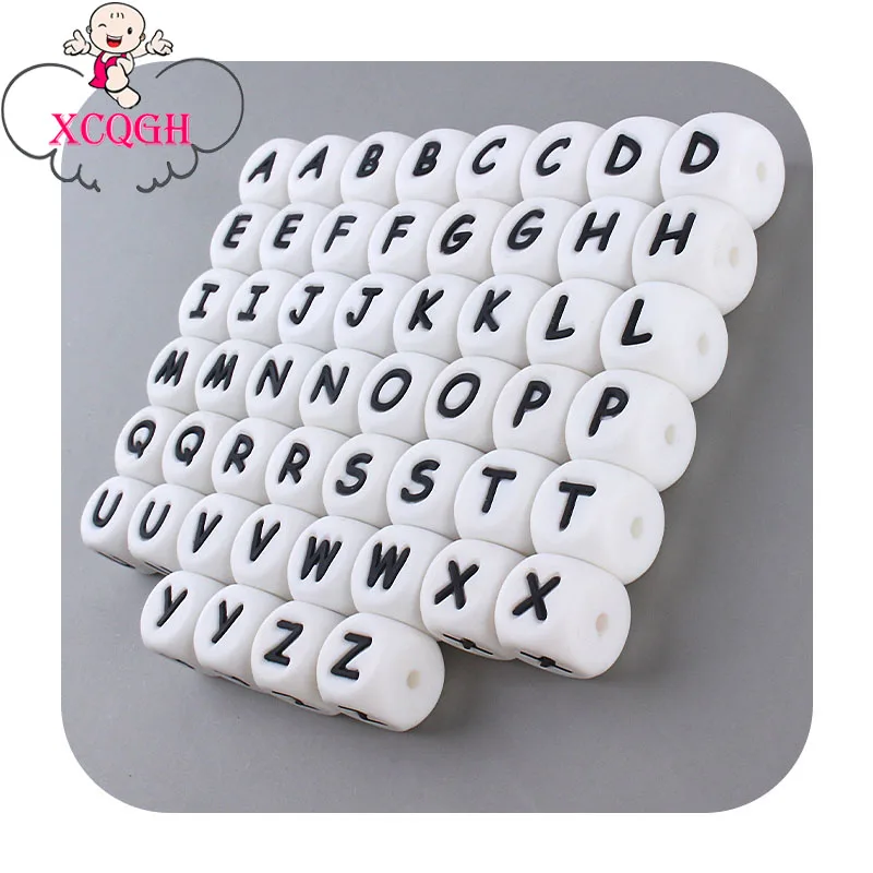 XCQGH 12 мм 100 шт. силиконовые бусины с буквами Детские бусины для прорезывателя для самостоятельного изготовления именных зажимов для соски цепочка Жевательные бусы с алфавитом