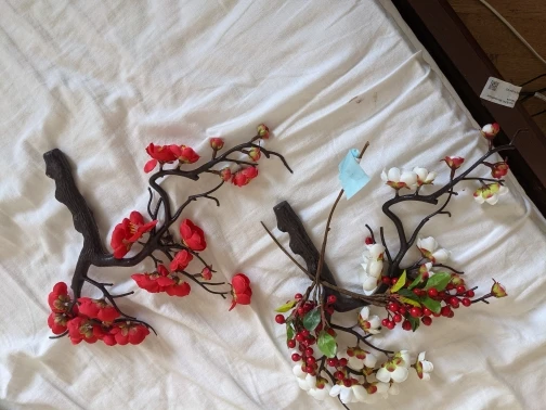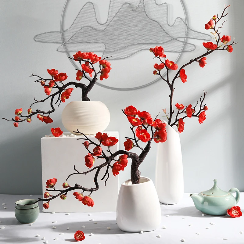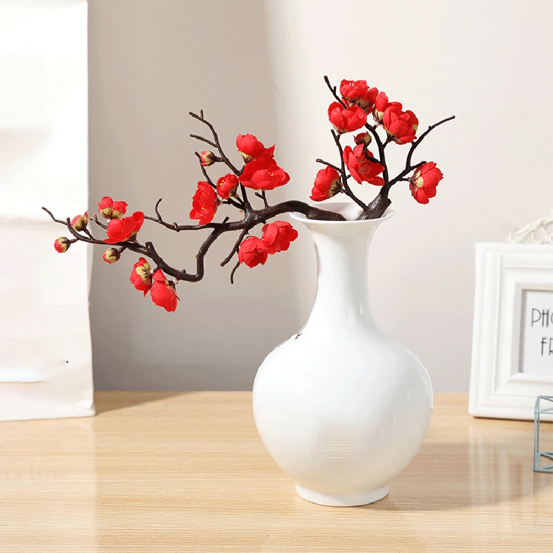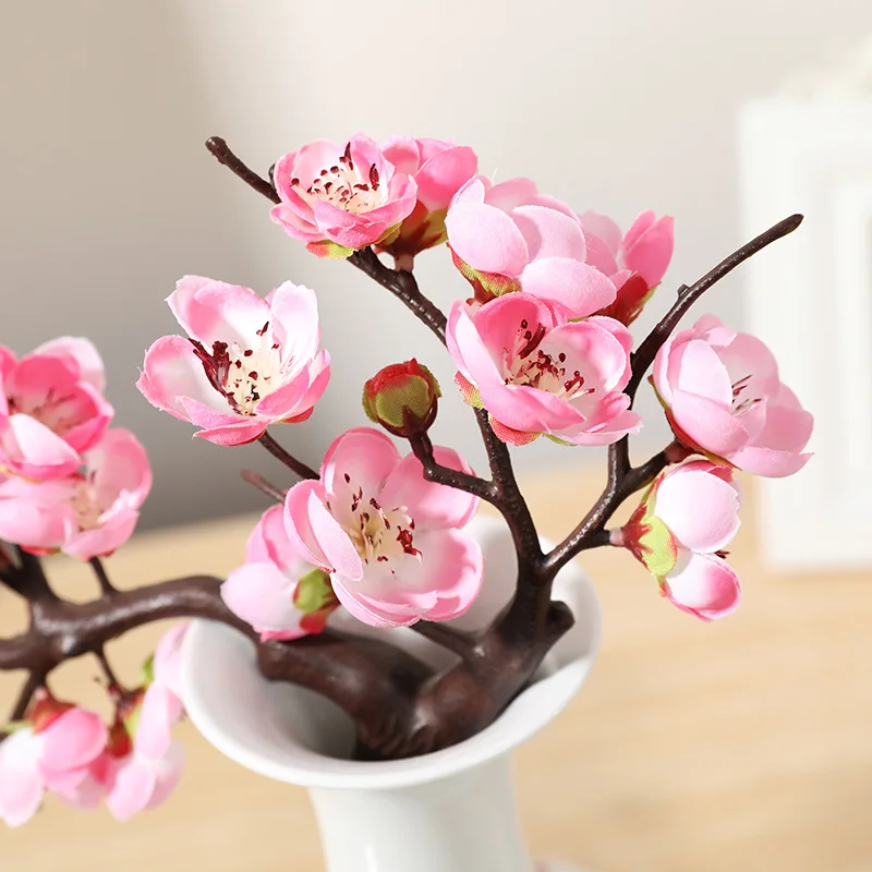 Вишневый красный цветок сливы, шелковые искусственные цветы, пластиковая ветка для свадьбы, украшение для дома сделай сам из пены, рождественские ягоды, искусственные цветы