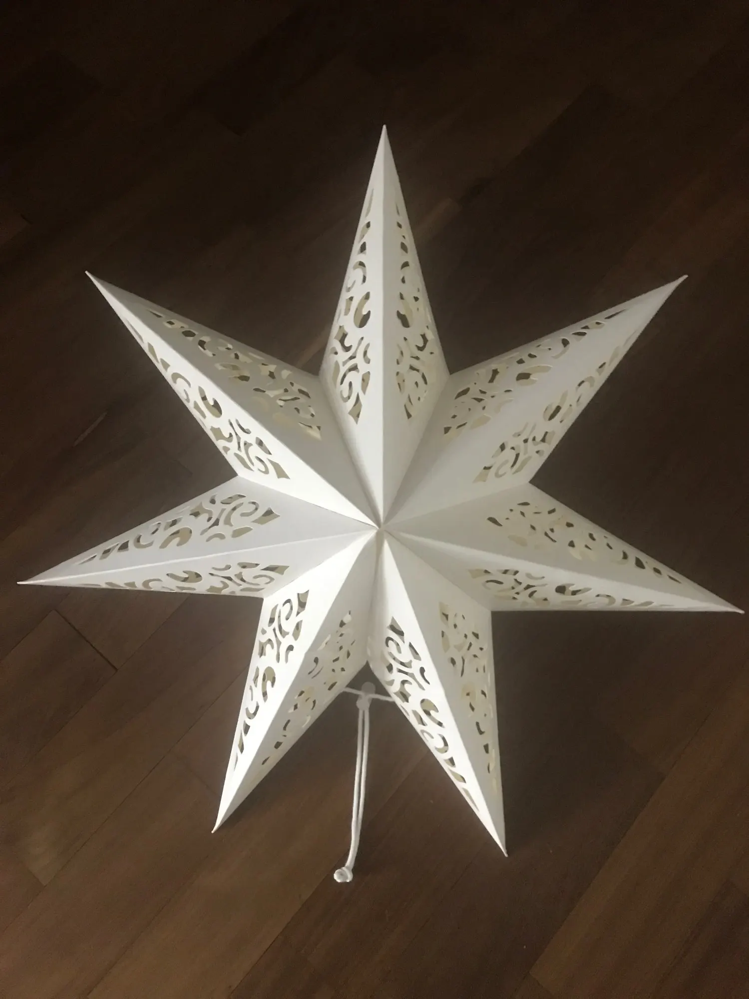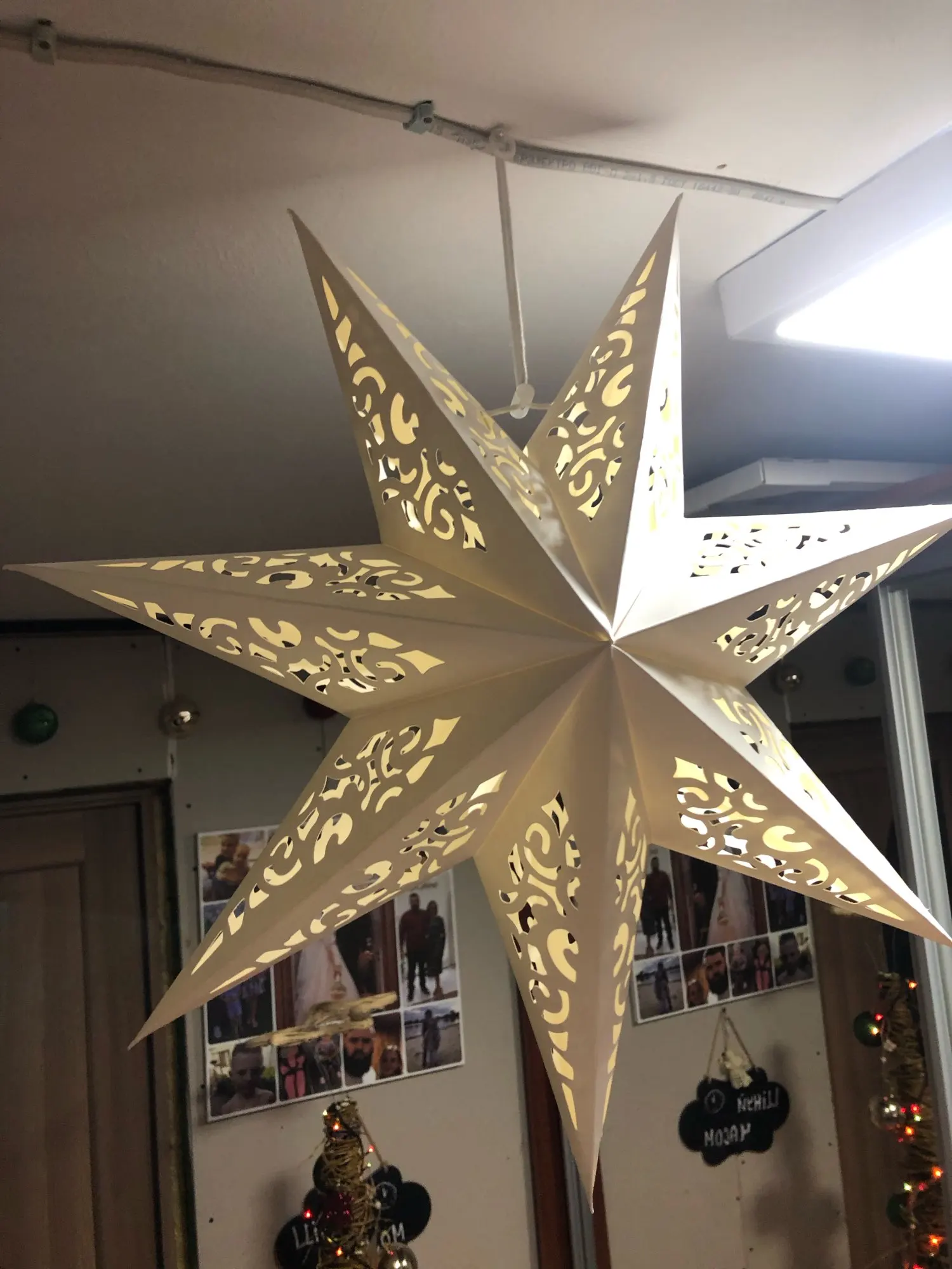 это не светильник,какуказановописании, а просто вырезаннная из бумаги звезда.