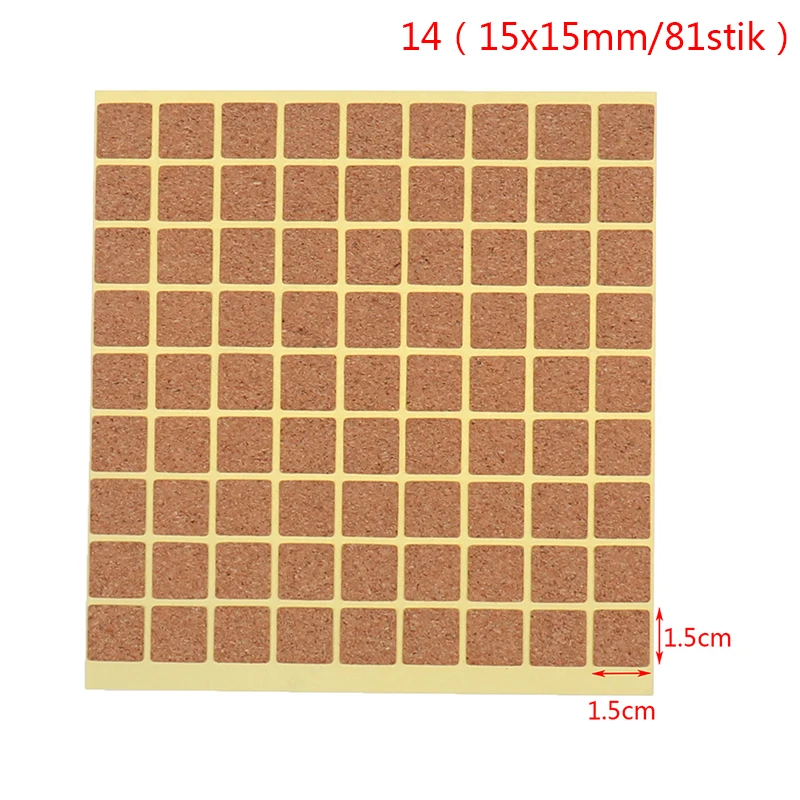 Характеристики:Материал: пробковая древесинаЭффект: водонепроницаемыйРазмер:1: черный 30x60mmx12штN3:22x63 мм x 18 шт.N8: Круглый 35 мм x 20 штN10: черный 30x30mmx24штN12: 126x60 мм x 3 шт.N13: 185x86 мм x 2 шт.N4: черный 14x30 мм 48 шт.