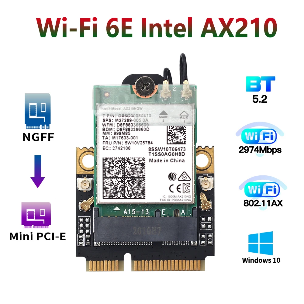 SupportIntel AX210 AX200, 9260, 8265, 8260 M.2 NGFF KEY E A Wifi Card