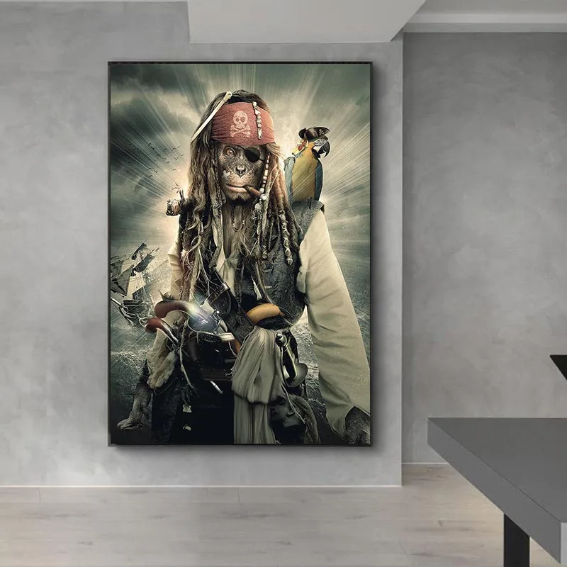 Пиратская обезьяна в море, холст, живопись локомотивной вечевечерние, панда, винтажные постеры и принты, картины на стену для гостиной