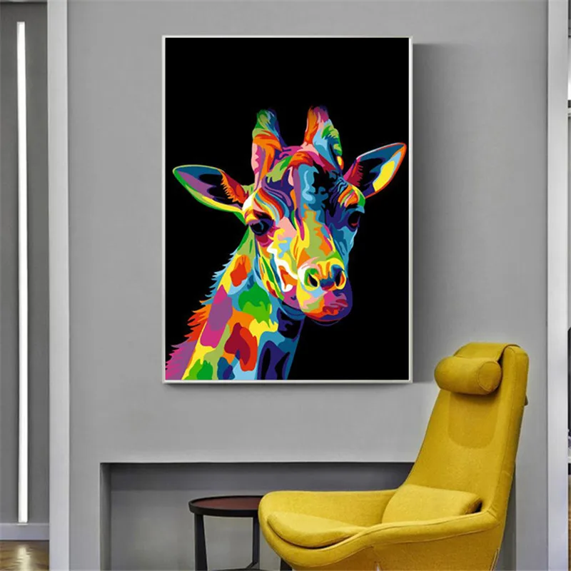 Картина с изображением животных, граффити, печать на холсте, постер, Настенная картина с головой жирафа для гостиной, домашний декор