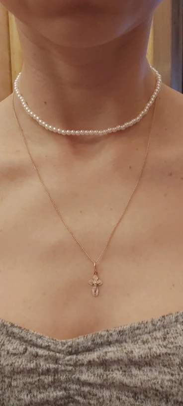 Ожерелье скручено с конца, мы не видим стразы, оно плохо ложится на шею
