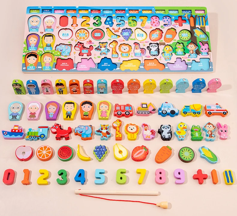 Обучающая деревянная игрушка Монтессори, Детская обучающая доска, математическая рыбалка, детская деревянная игрушка Монтессори с геометрическим подсчетом для дошкольного обучения