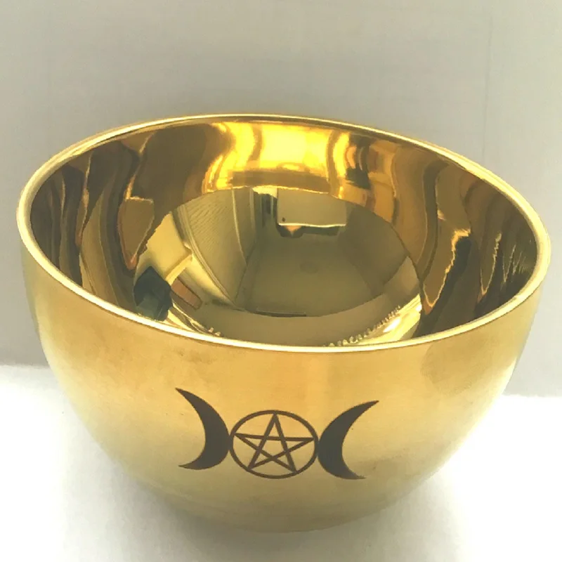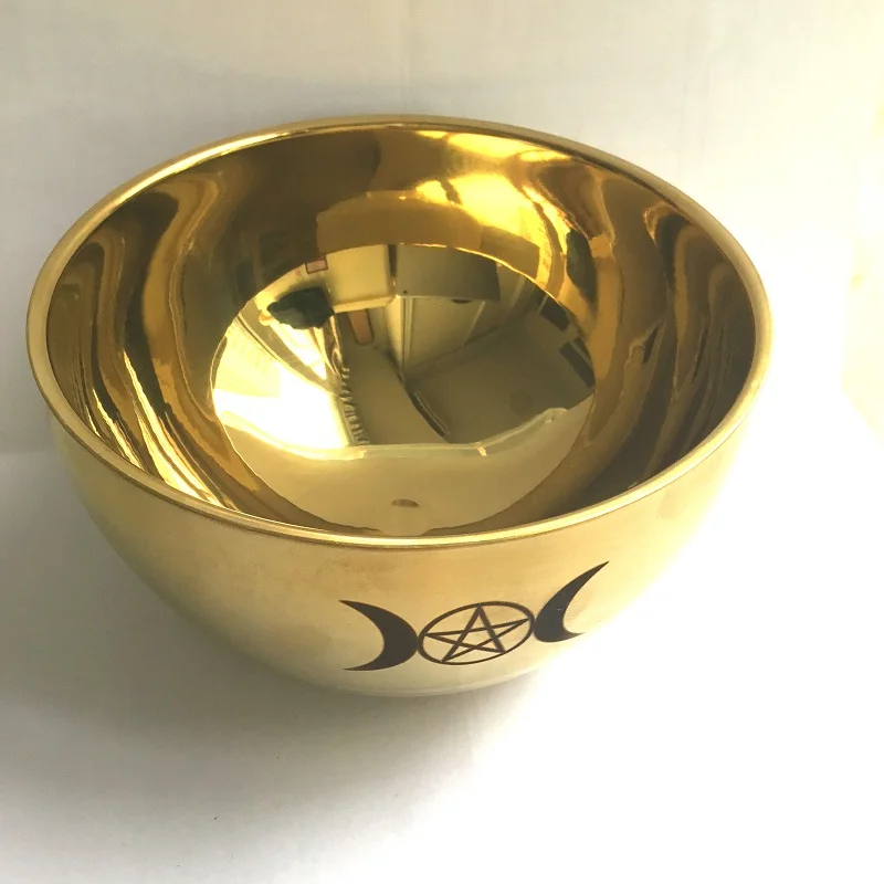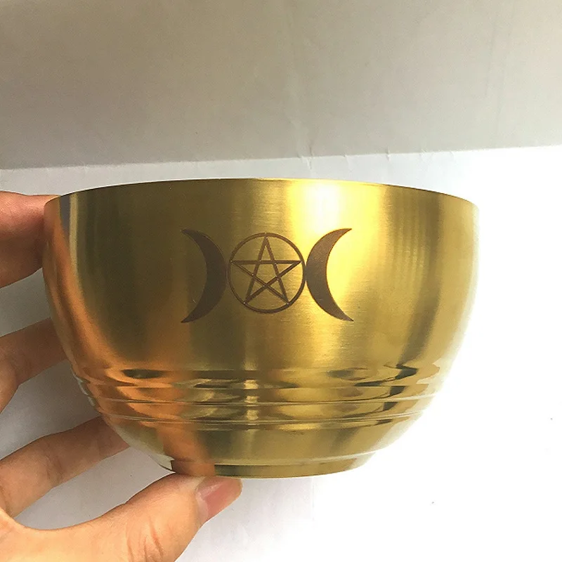 Изысканная миска Wicca для церемоний, таро, пентаграмма, позолота из нержавеющей стали, посуда