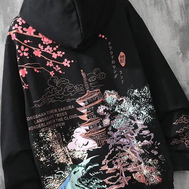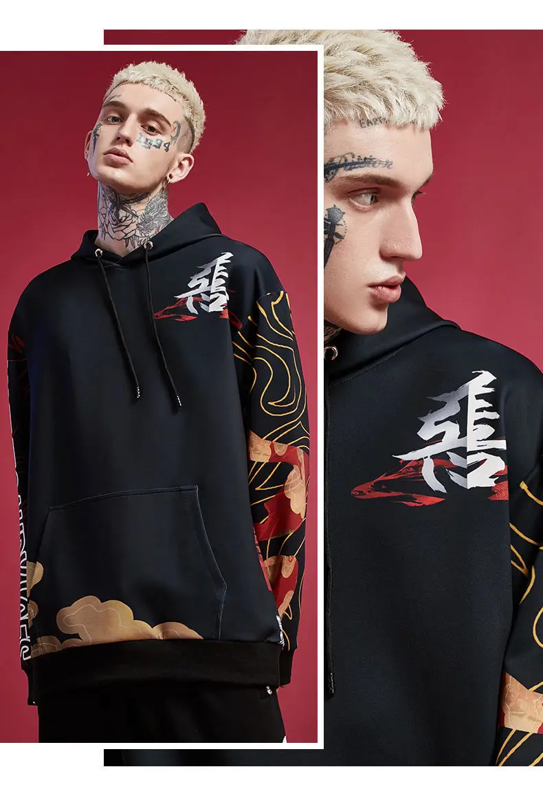 Весенне-осенняя трендовая Японская уличная одежда в стиле Харадзюку, Мужская свободная одежда в стиле хип-хоп с капюшоном в стиле ретро, худи с рисунком Swag для пар