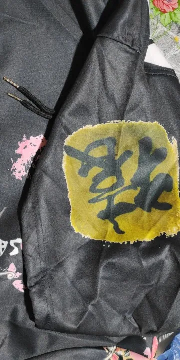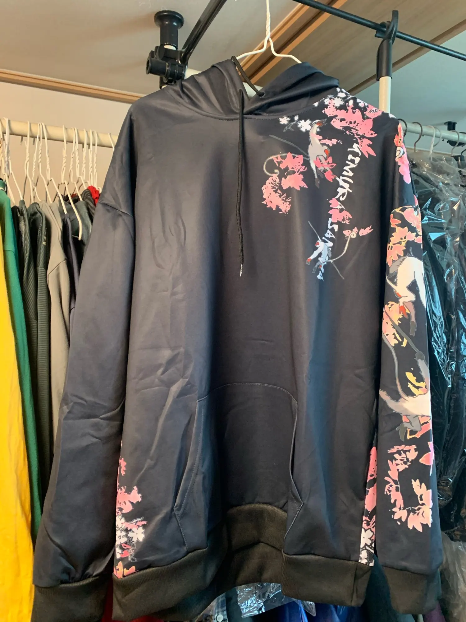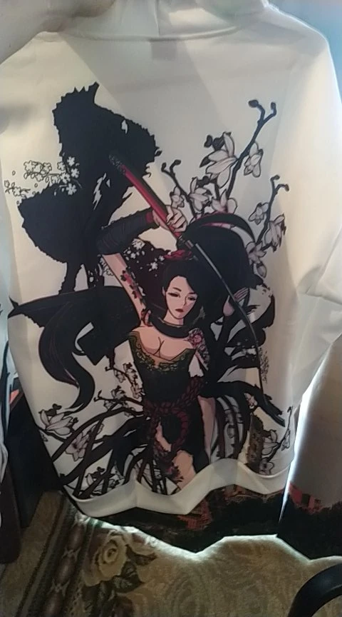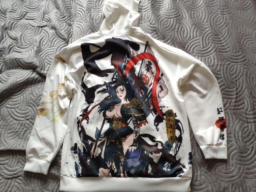 итак. долго я ждал этих толстовок. у черной материал очень интересный, между кожзамом и шелком - блестит. по размеру я даже не знаю. обычно оверсайз это специальный пошив, здесь это только смещенные плечи, и всё. а так будто с толстого мужика. печать просто изумительна! и есть на этой кофте брак. шов под карманом просто пошел погулять, но это не особо заметно, надеюсь.
