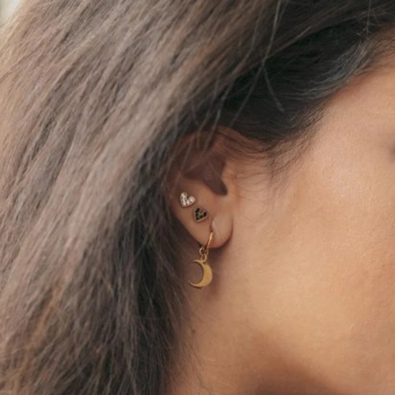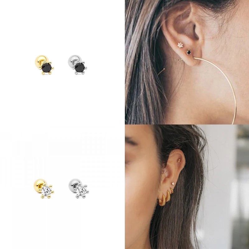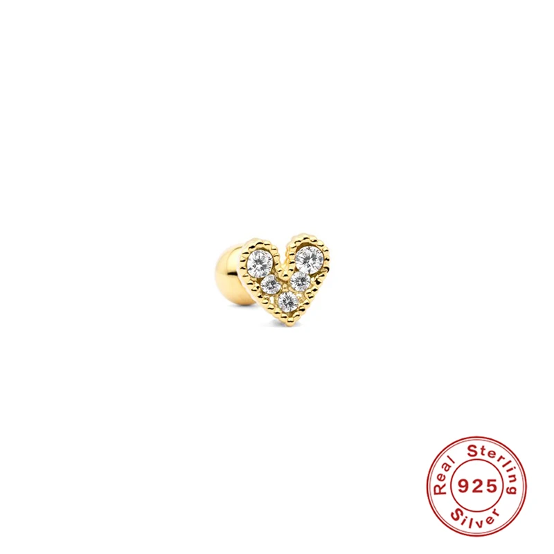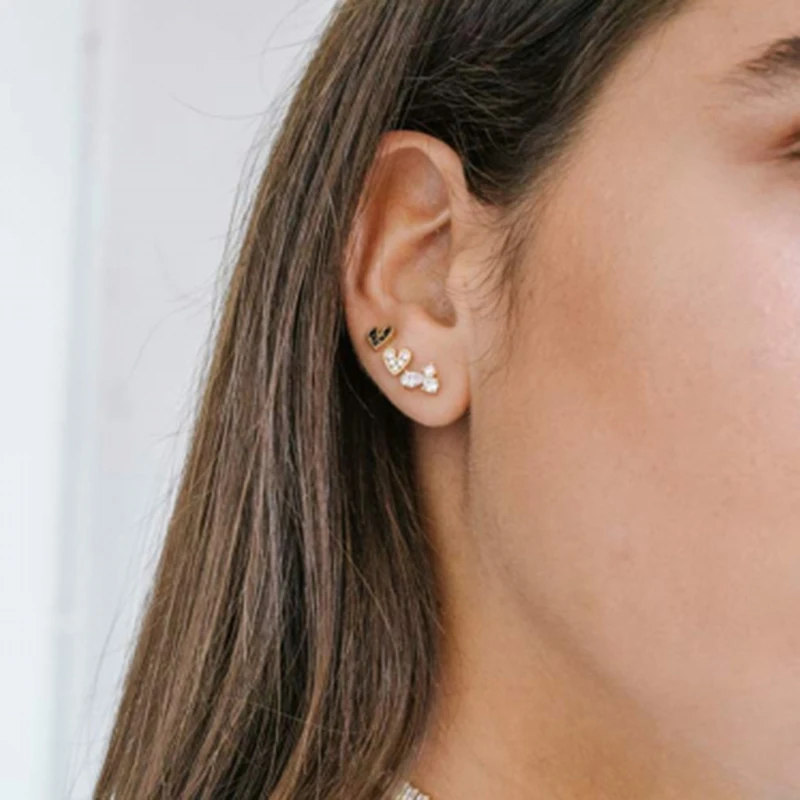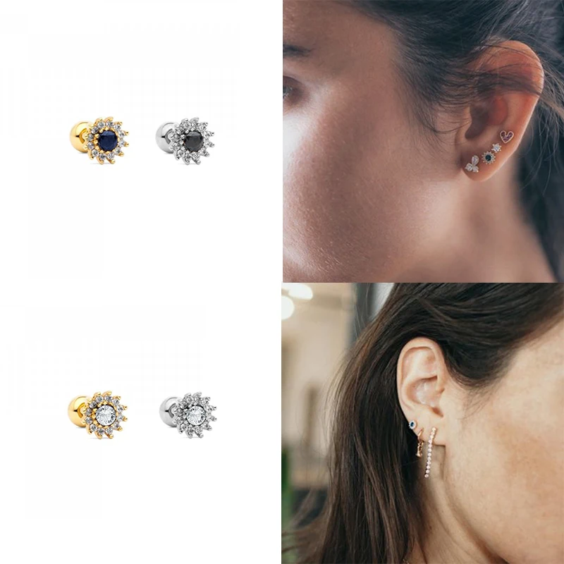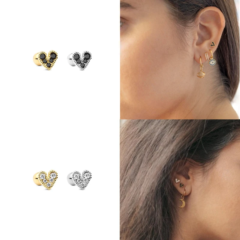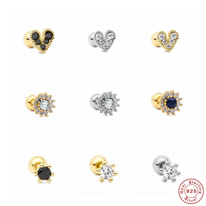 Aide 925 стерлингового серебра тонкие Кристальные серьги гвоздики с камнем подсолнечника сердце Форма черный прозрачный Циркон мочки уха Пряжка Пирсинг Серьга