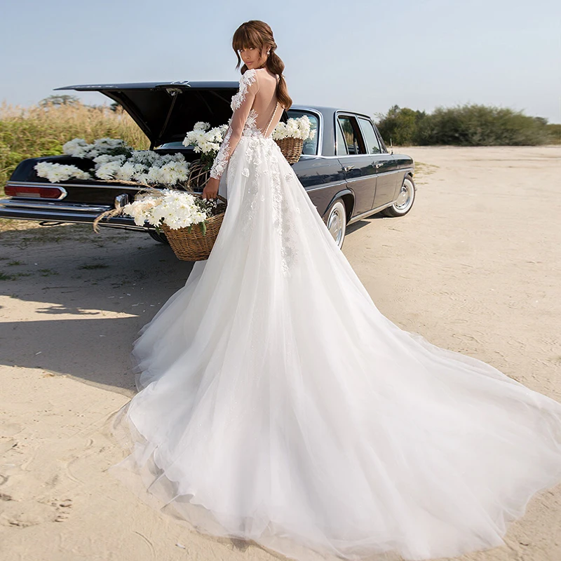 Женское свадебное платье с длинными рукавами, Кружевная аппликация ...