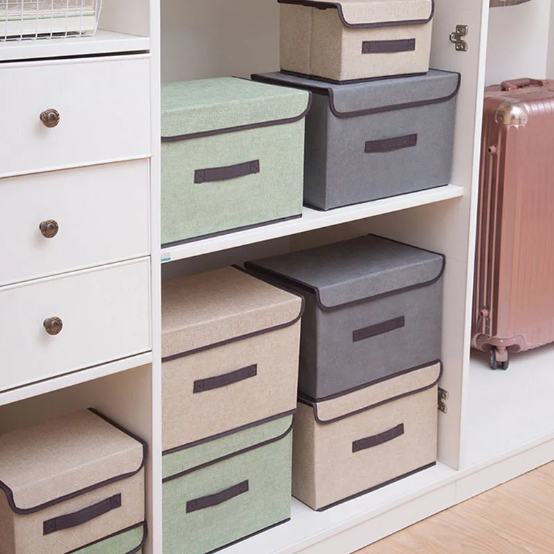 Ящик для хранения из хлопка и льна с крышкой, 2 размера, органайзер...