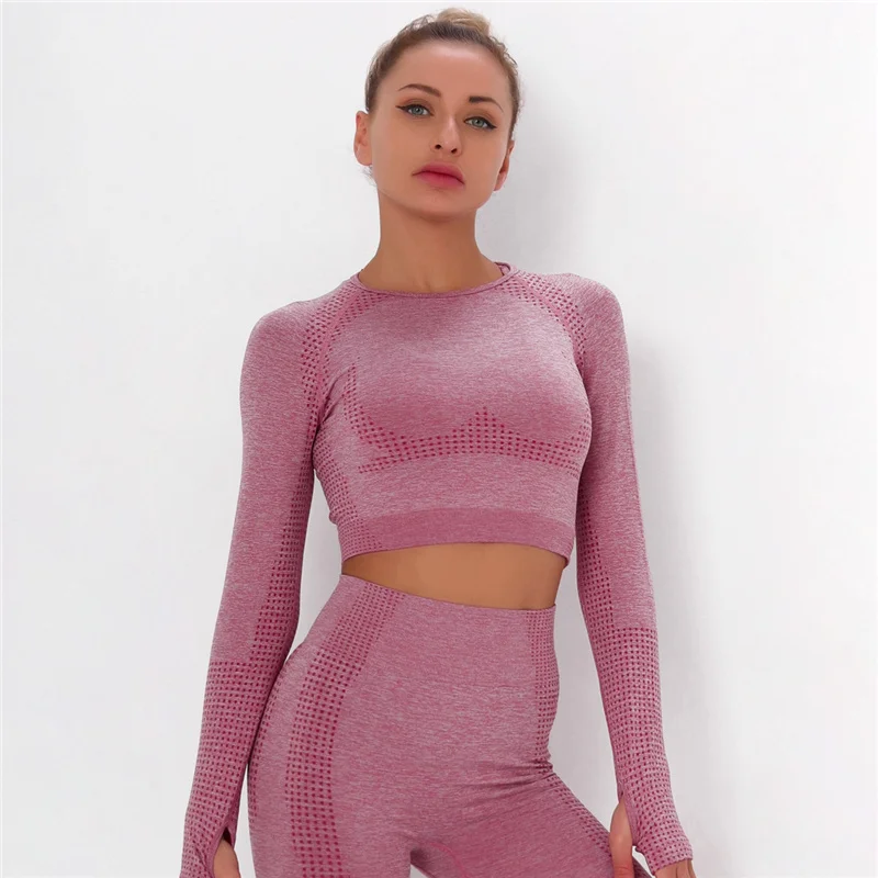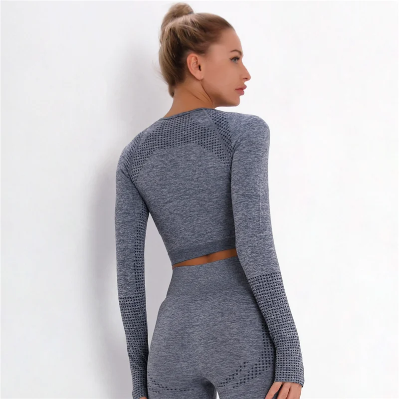Hamidou женский спортивный топ, однотонная спортивная рубашка, бесшовный топ с длинным рукавом, Женский Топ для йоги, женская футболка для бега, спортивный топ
