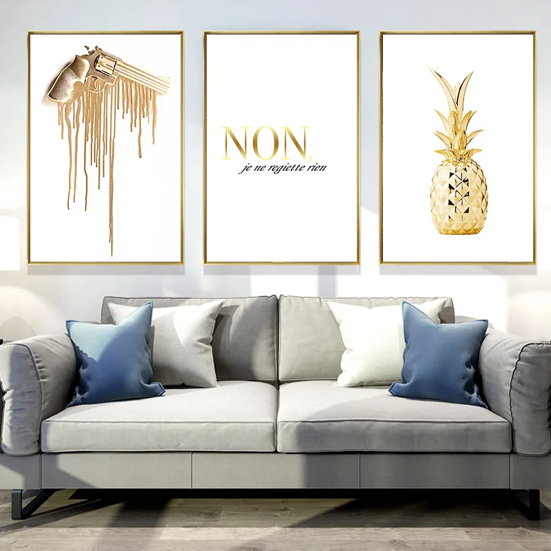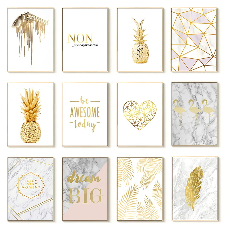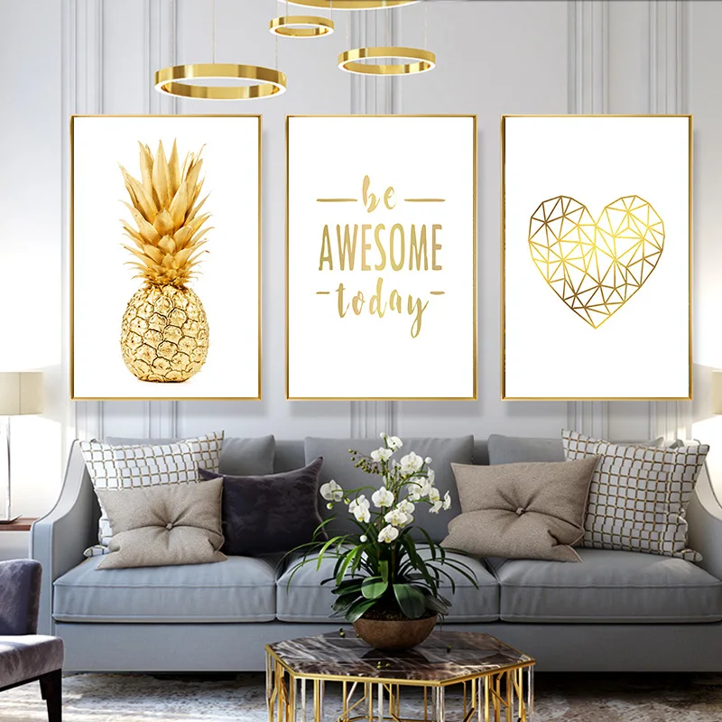 Золотой ананас любовь простая картина с надписью Core нордический стиль Декор для гостиной эстетическое украшение для дивана Картина на холсте