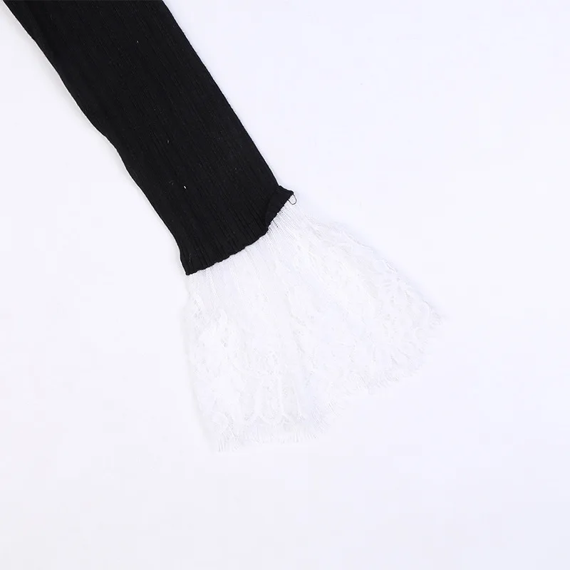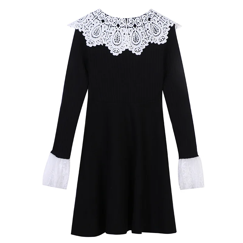 Женское трикотажное платье, элегантное винтажное платье-свитер черного цвета с кружевным воротником и длинным рукавом, Осень-зима 2020