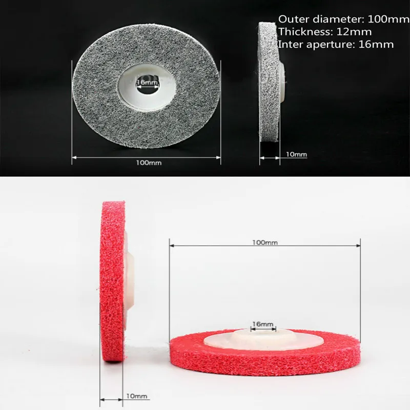 100% абсолютно новые и высококачественные характеристики: гибкая, прочная, эффективная, самозатачивающаяся, антиблокирующая, не горящая поверхность заготовки (без потемнения), высокая отделка. Антиблокирующее свойство полировального слоя и сохранение размеров заготовки хороши; Полировальный слой трёхмерного сетчатого корпуса имеет хороший эффект рассеивания тепла и нелегко сжечь заготовку. Полировка, Удаление заусенцев, очистка и смешивание, высокая эффективность, высокое качество и экономия времени, экономия труда и экономия процесса. Подходит для отделки поверхности различных материалов, таких как металл, дерево и пластик. Параметры: Материал: волокно и plasticOuter Диаметр: 100 мм/3,94 inchBore Диаметр: 16 мм/0,63 inchThickness: 12 мм/0,47 inchColor: желтовато-коричневый, красный, серый, синий, зеленый