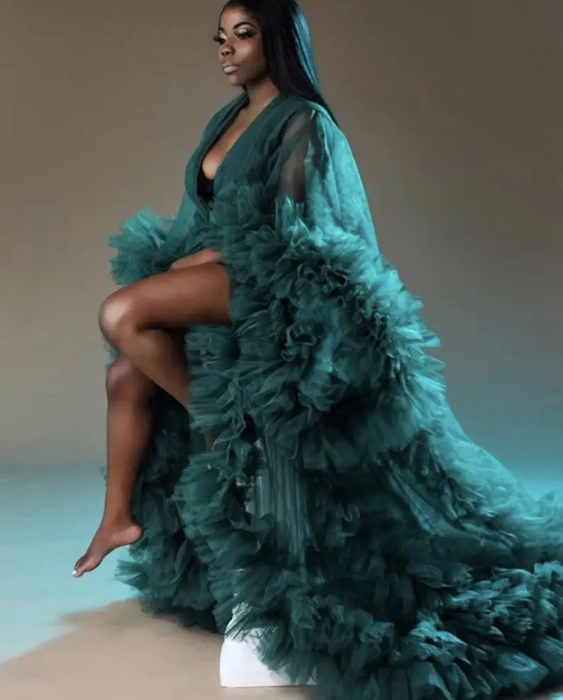 Халат для беременных Hunter Green, тюлевый, на заказ, сетчатый, для выпускного вечера, шаль невесты