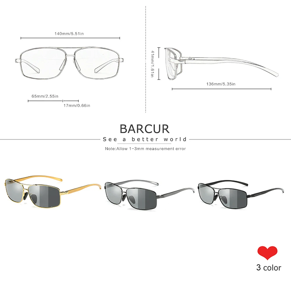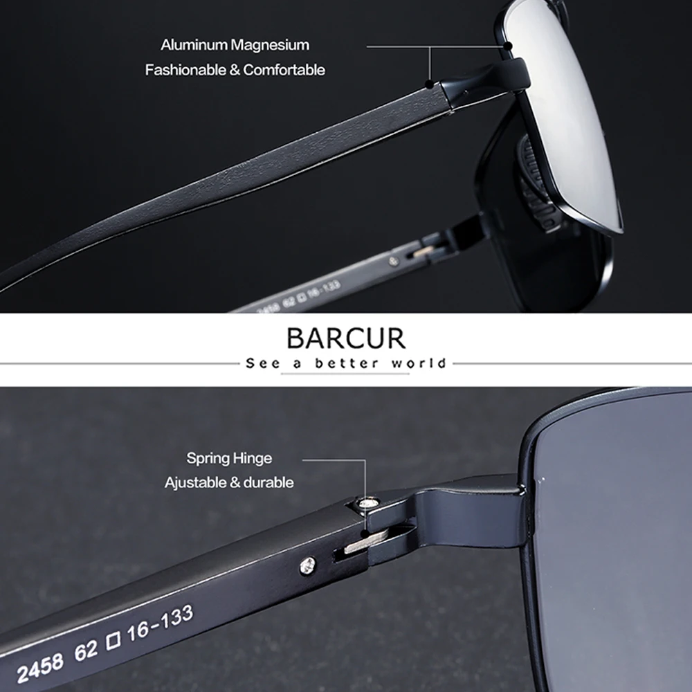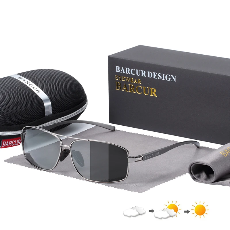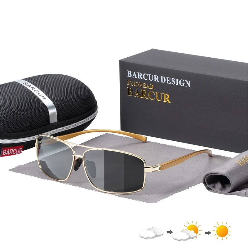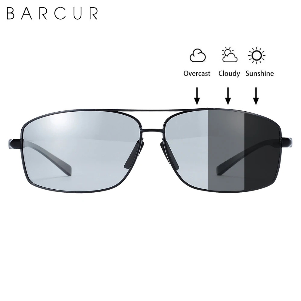 Солнцезащитные очки BARCUR мужские фотохромные, прямоугольной формы, поляризационные, для вождения, рыбалки