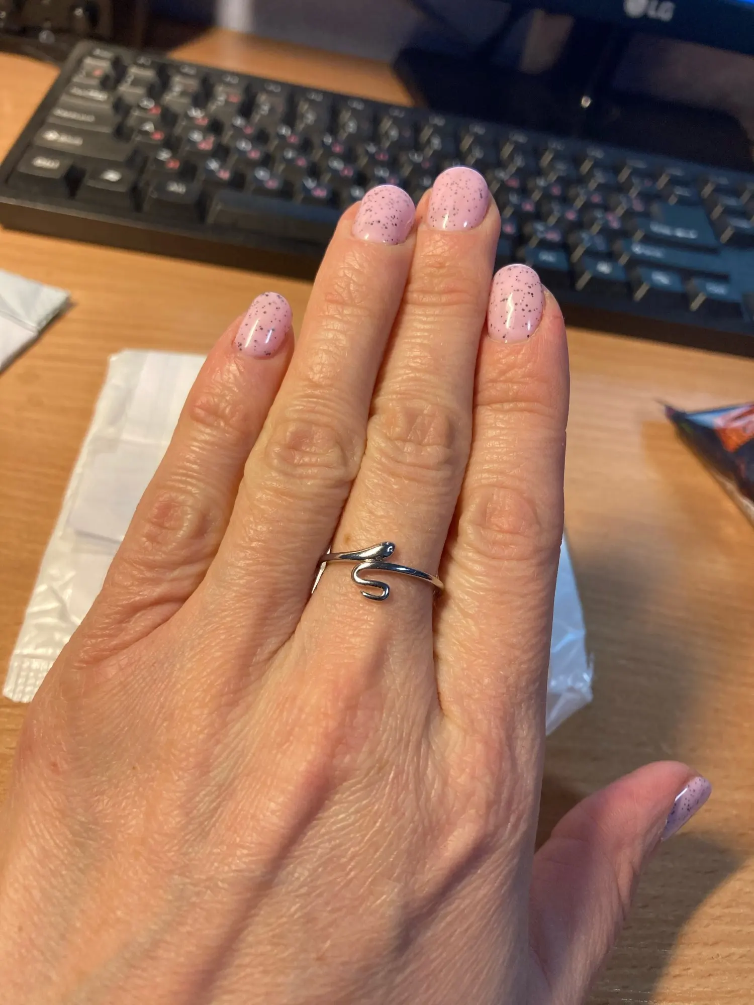 Красивое кольцо, изящное. Регулируемый размер, оно смотрится очень аккуратно, можно носить и на мизинце. Посылка пришла очень быстро, за недели две(но я заказывала несколько товаров сразу, сейчас с такой функцией ускоренная доставка)