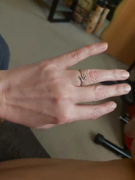 очень красивое кольцо, можно регулировать как хочется, ношу на разных пальцах, Классный вариант подарка, когда не знаешь размера даже проба стоит какая-то)) единственное, оно мне кажется толстоватым, но ничего) неоднократно мыла с ним руки и посуду и оно пока в первоначальном виде.