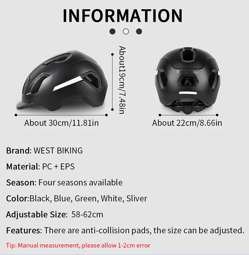 Велосипедный шлем Размеры: подходит для окружности головы 56-62 см. Головка Ширина 17,5 см, голова Длина 22,5 см. Позади кнопки регулировки может быть отрегулировано меньшего размера. Цвет: 3 цвета Вес нетто: около 0,338 кг Материал: пенополистирол + Поликарбонат, Нейлоновый Регулируемый ремень и регулятор материала PP.