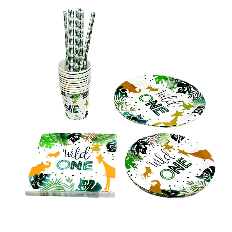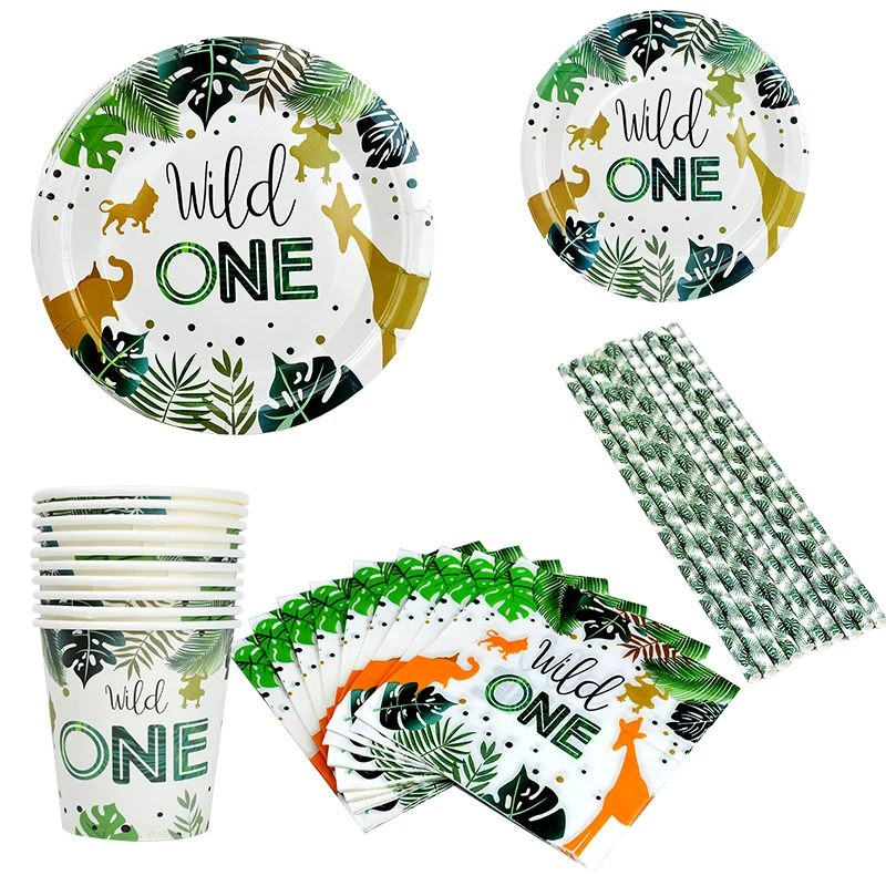 50 шт.компл. и надписью Wild One джунгли тематические праздничные товары для дня рождения набор одноразовой посуды бумажные стаканчики и тарелки салфетки питьевые соломки