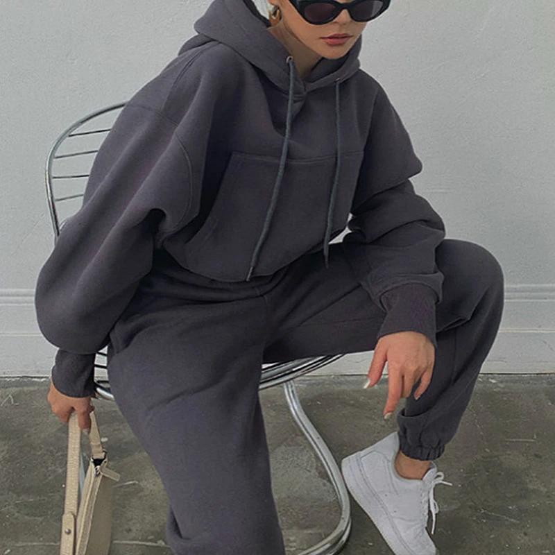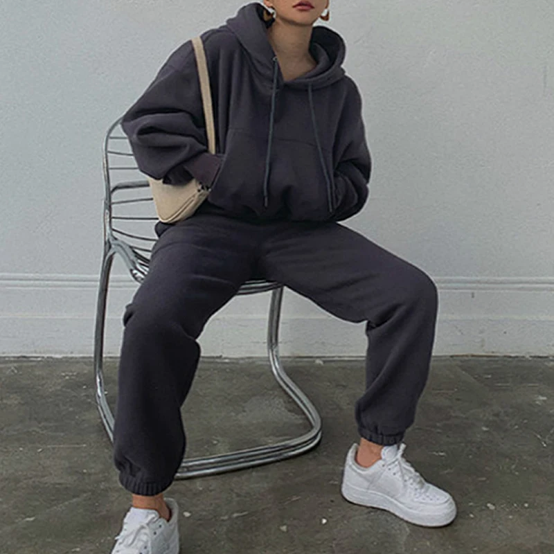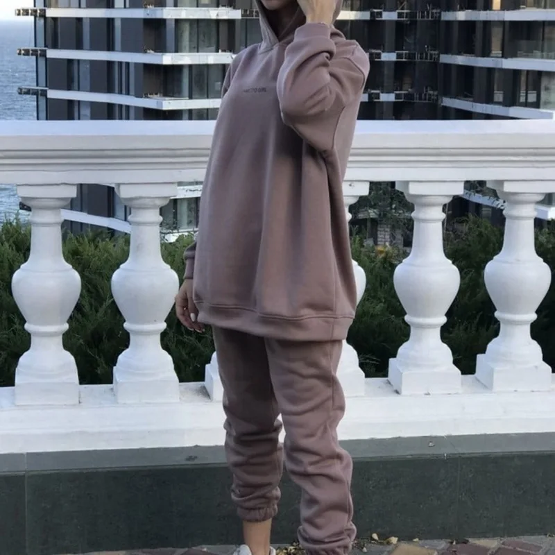 Осенне-зимний спортивный костюм, женский комплект из двух предметов, свободная рубашка с длинным рукавом и штаны большого размера