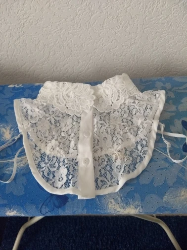 Крутой накладной воротник, синтетический, сшит неплохо. Длинные верёвочки. Заказала 11.01, пришло 7.02 в СПб. Довольна.