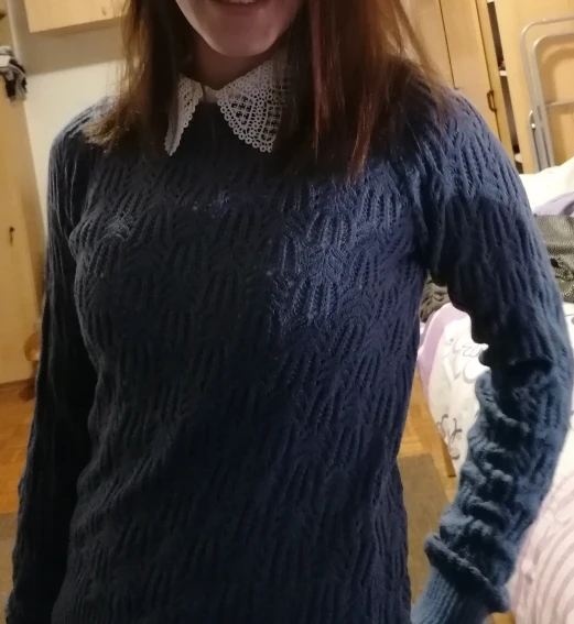 Воротничок неплохой, но оверложка выполнена не очень качественно, торчат нитки, думаю долго не протянет.