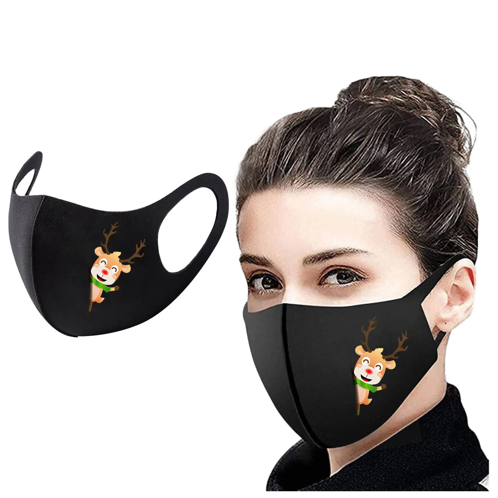Рождественская Пылезащитная маска для лица, многоразовая цветная тк...