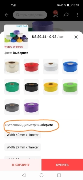 Пожалуйста, проверьте диаметр перед заказом