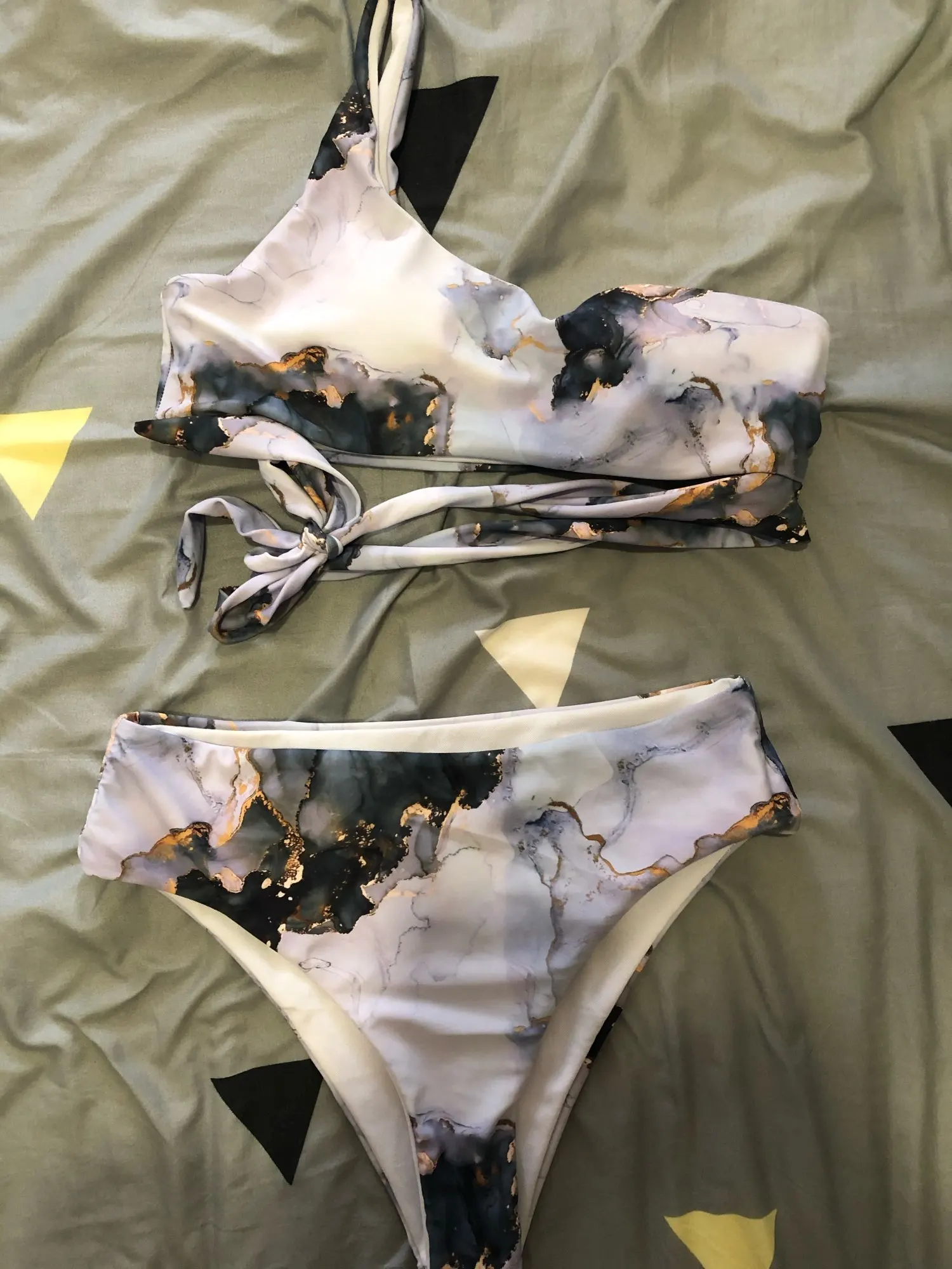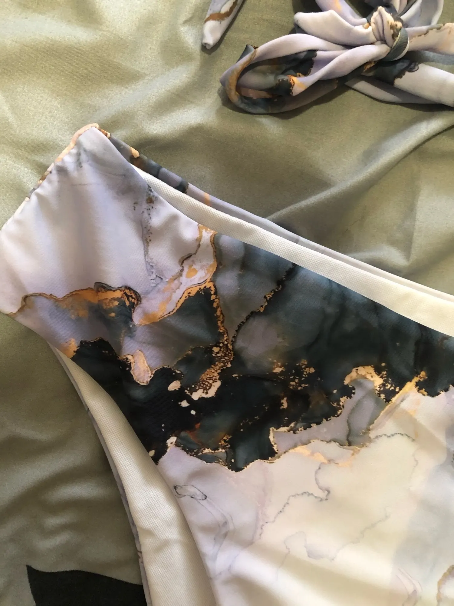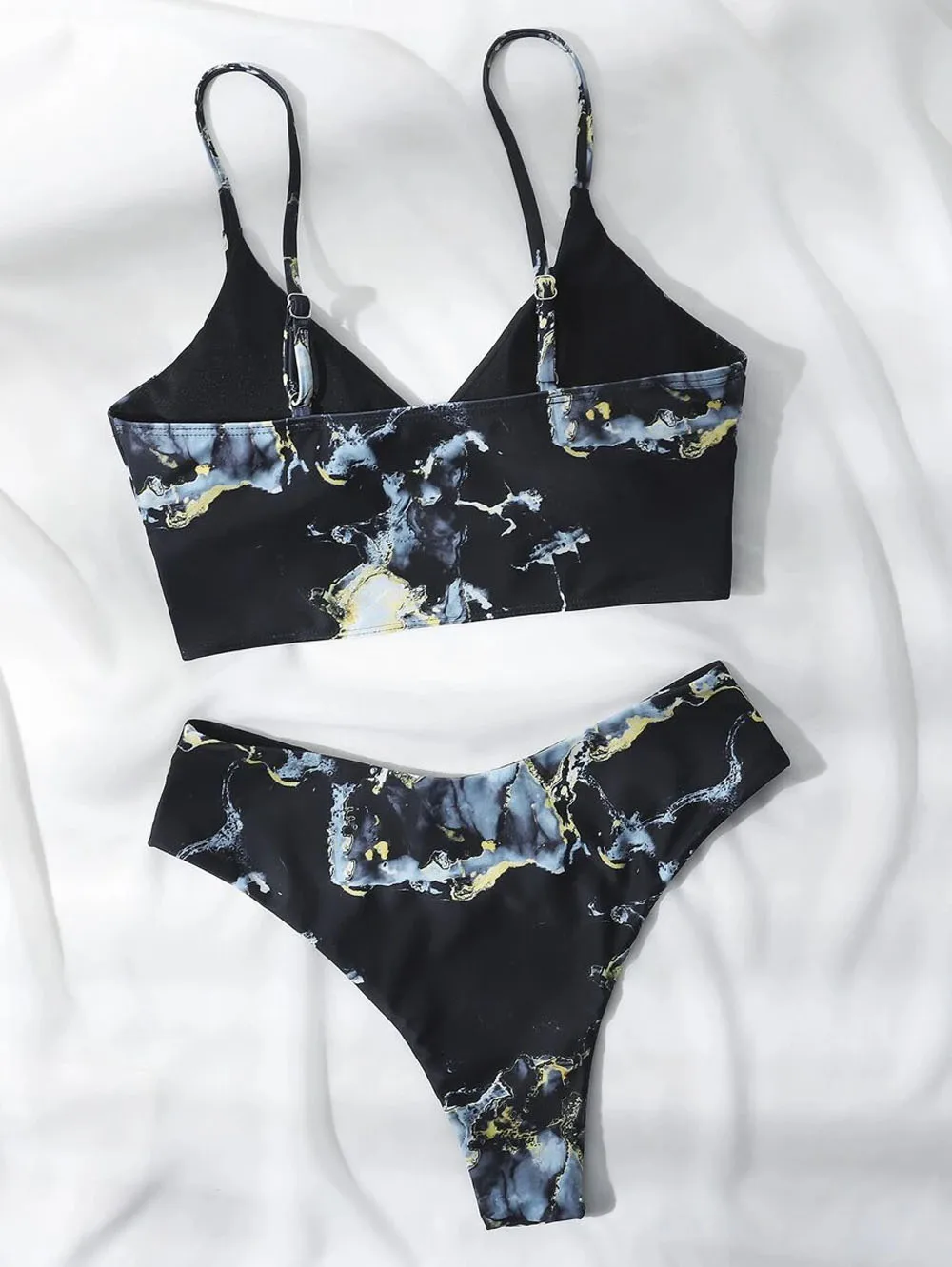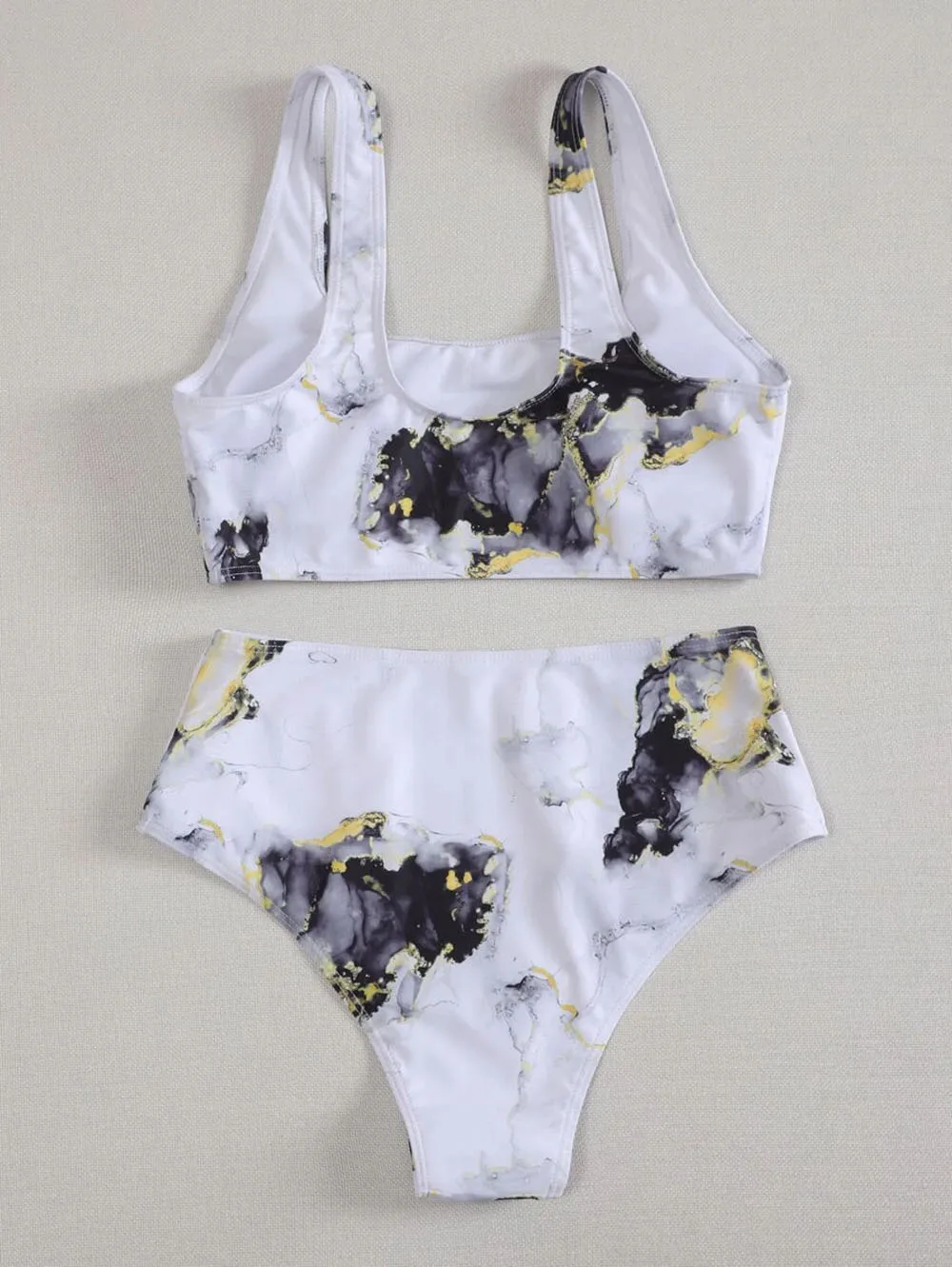 Новинка 2023, спортивный бандо с принтом, бикини с пуш-ап, сексуальный женский купальник с мраморным узором, купальник с высокой талией, женский купальный костюм, пляжная одежда