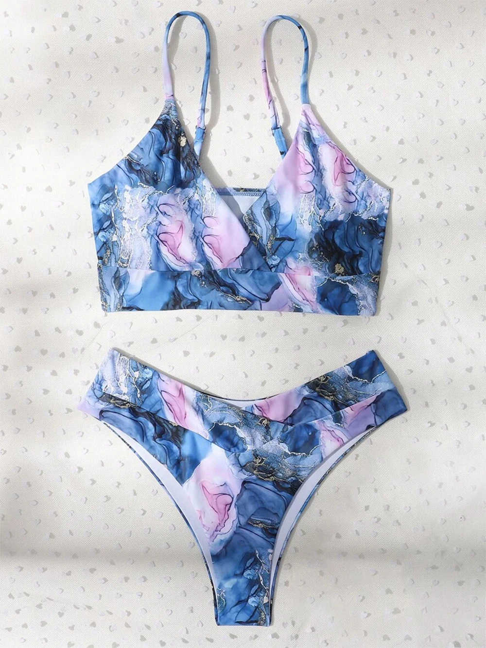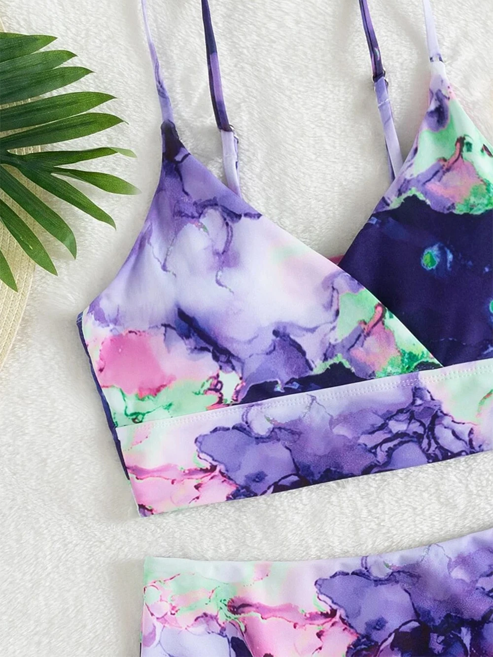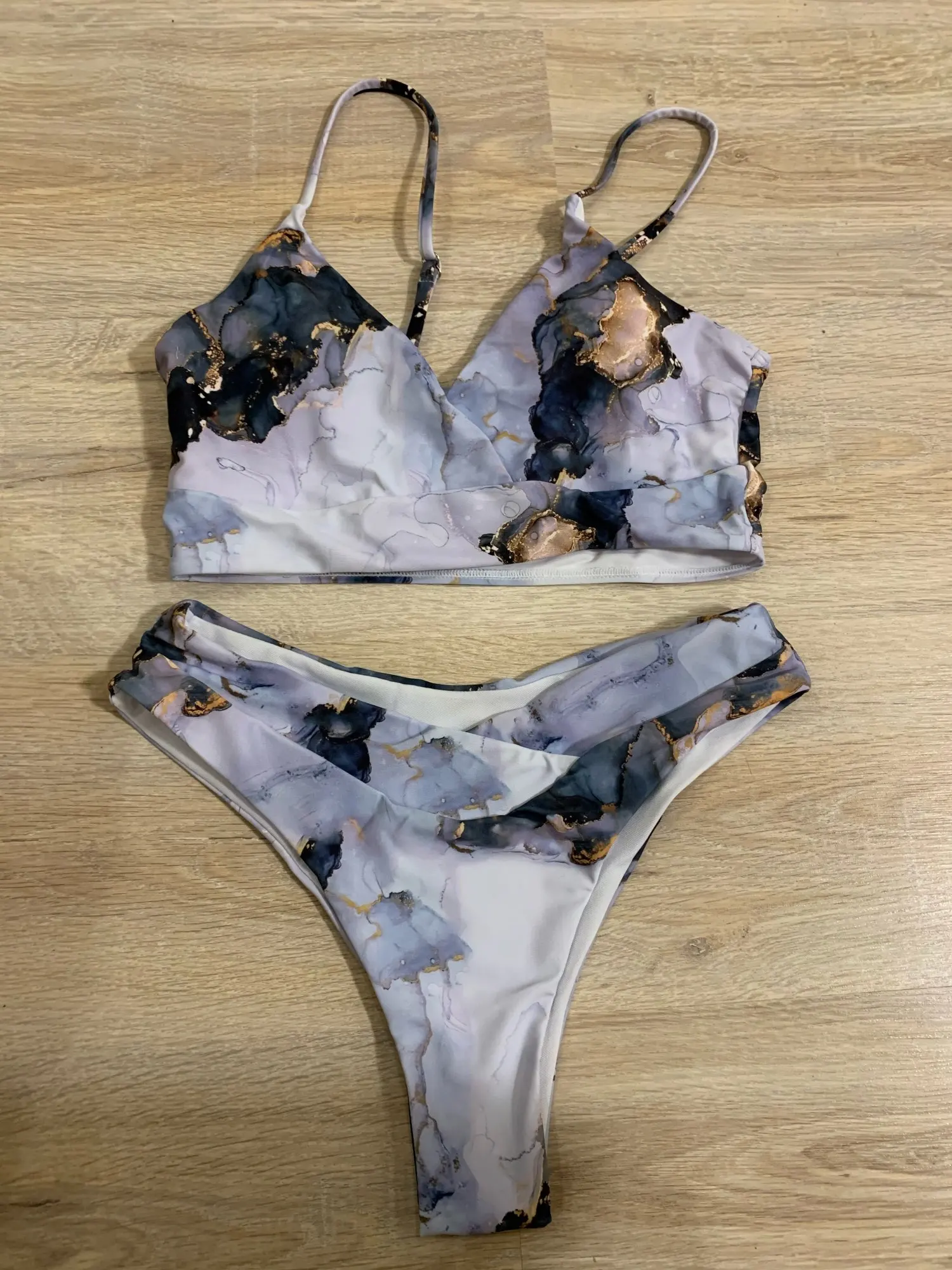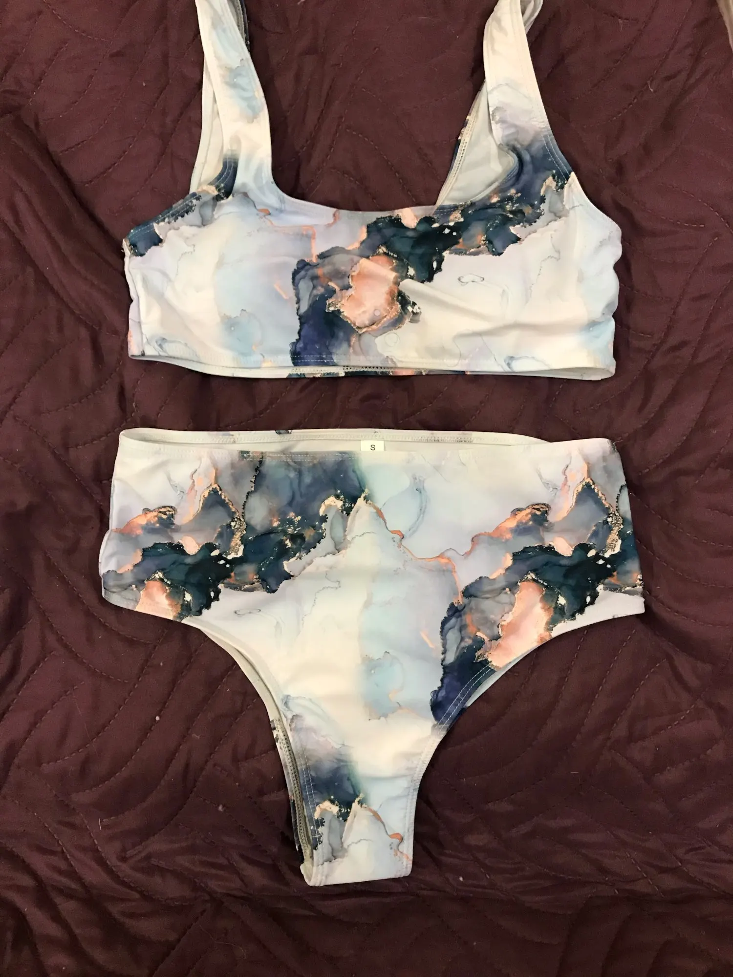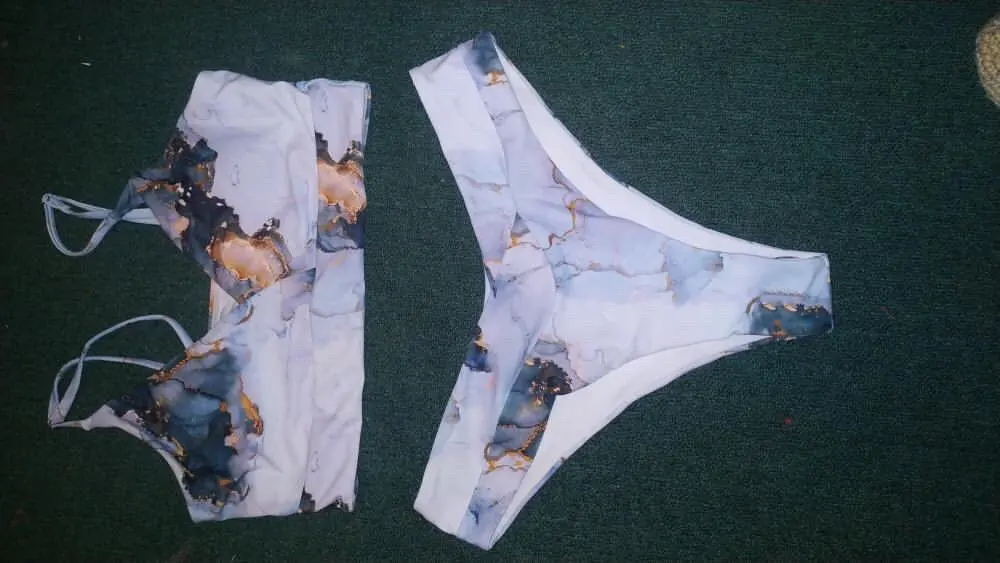 Новинка 2023, спортивный бандо с принтом, бикини с пуш-ап, сексуальный женский купальник с мраморным узором, купальник с высокой талией, женский купальный костюм, пляжная одежда