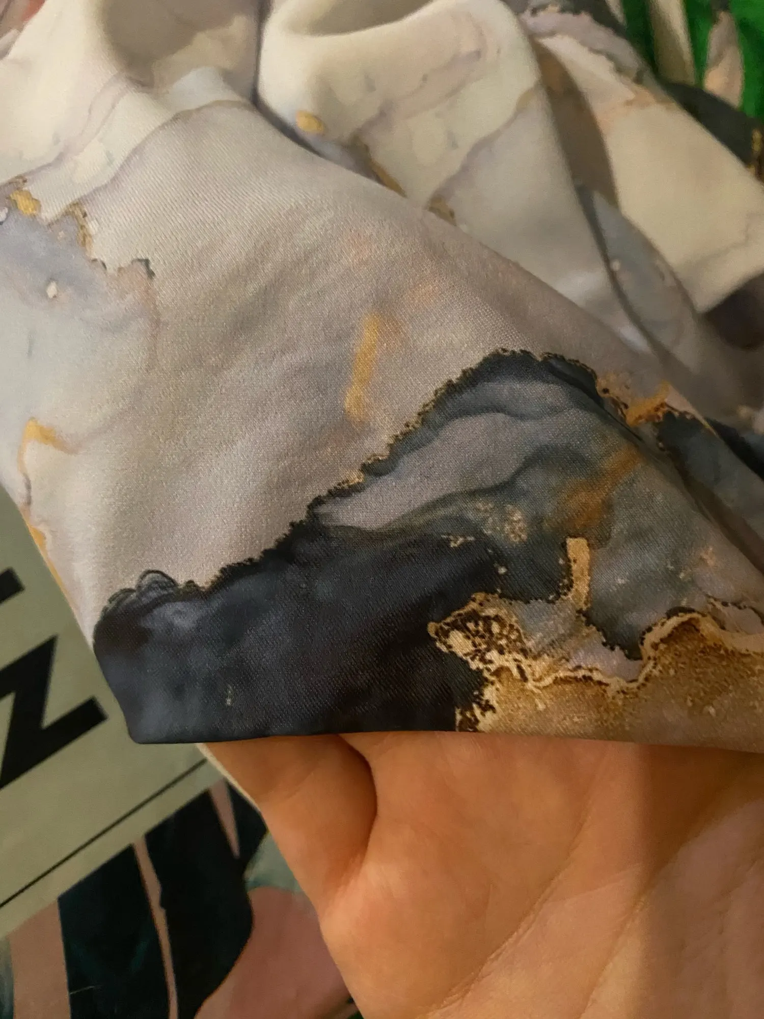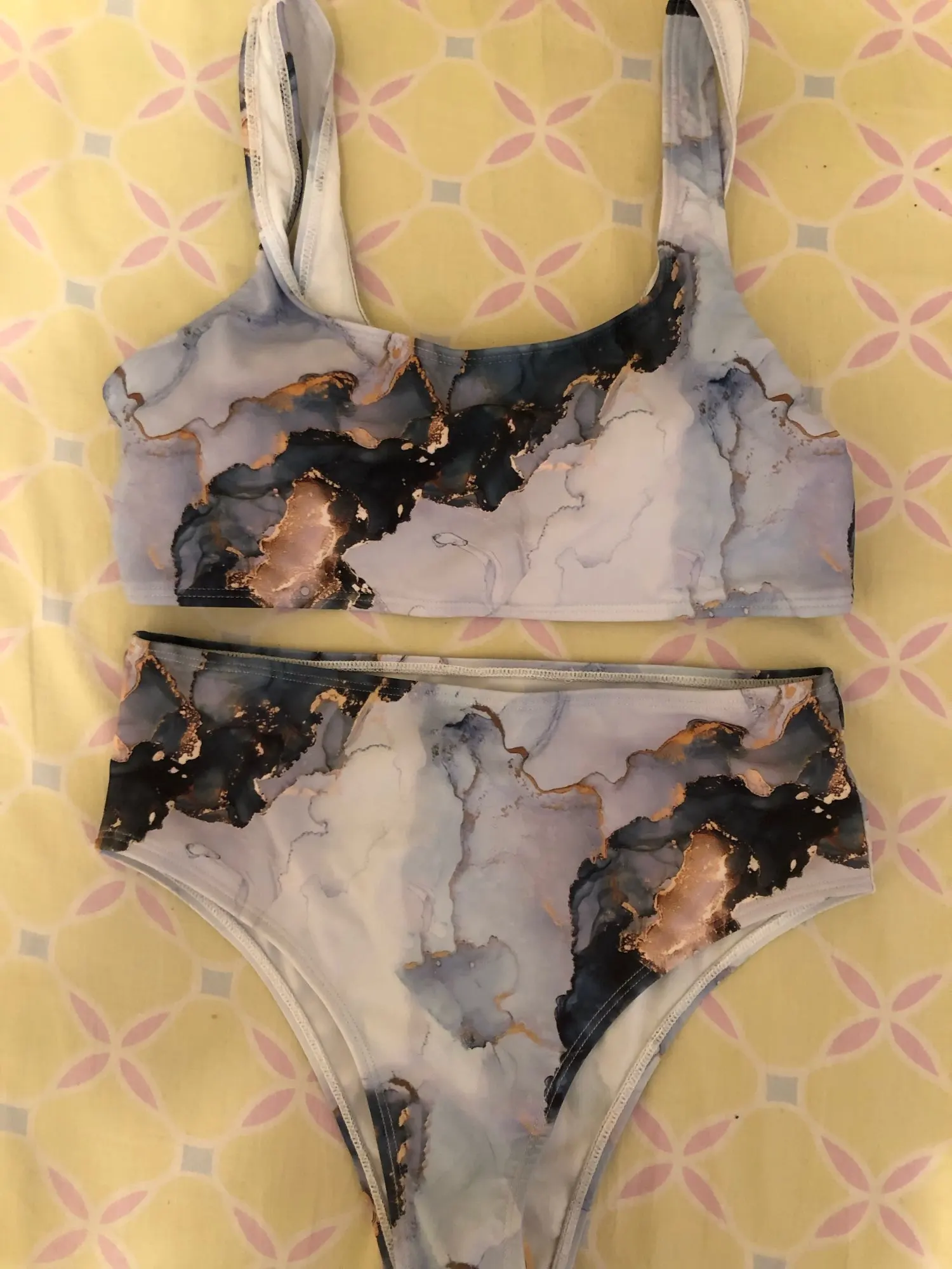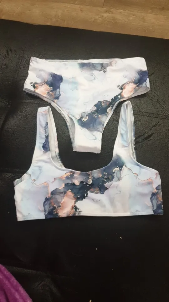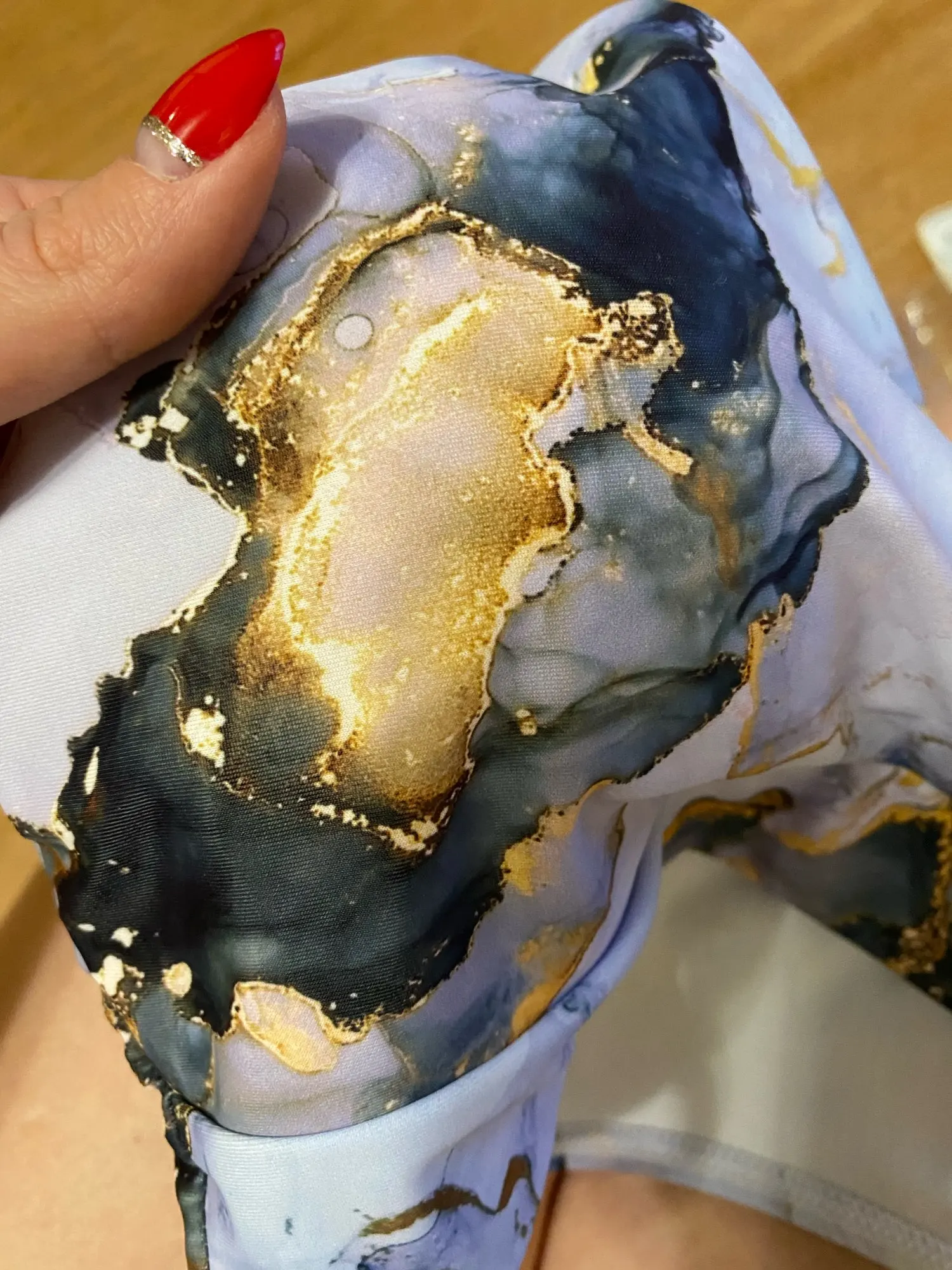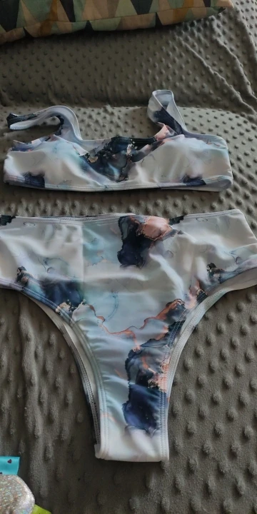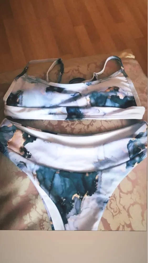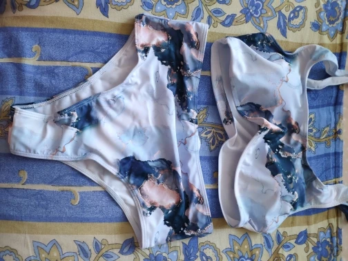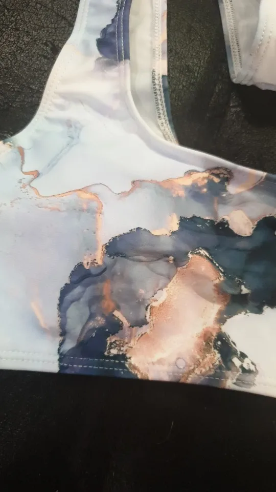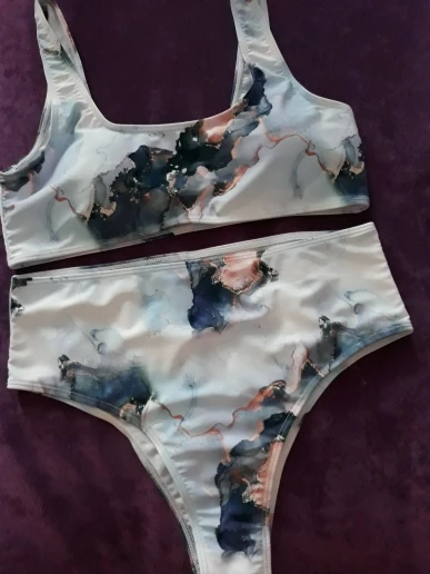 Отличный купальник, разводы немного другие, сел отлично, у меня российский размер 44-46