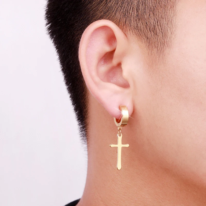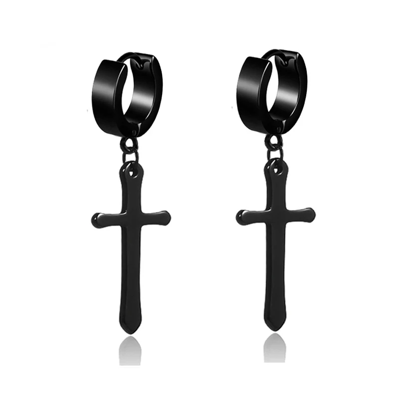 Серьги-кресты унисекс из нержавеющей стали для женщин и мужчин, серьги 4 цветов с подвеской в виде креста для уличного ночного клуба и девушек, черные