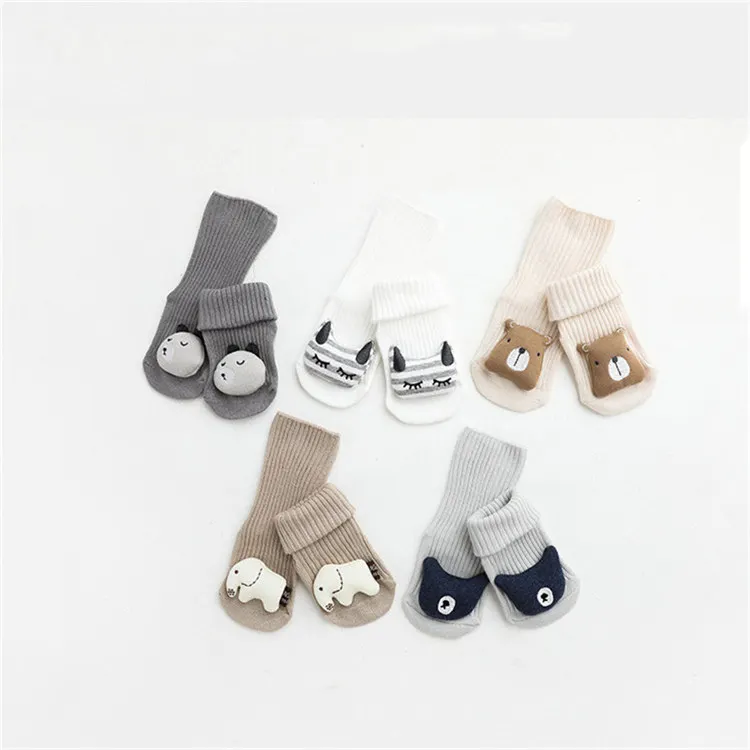 Новинка, хлопковые теплые нескользящие носки-тапочки с рисунком для малышей осенне-зимние теплые милые теплые носки для новорожденных и детей от 3 лет