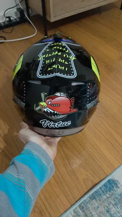товар соответствует описанию.доставка до Смоленской области заняла 2месяца.на козырьке шлема обнаружил небольшую трещину и в плавленый абразив в пластик в виде песка.открыли спор вернули часть денег.продавца рекомендую.