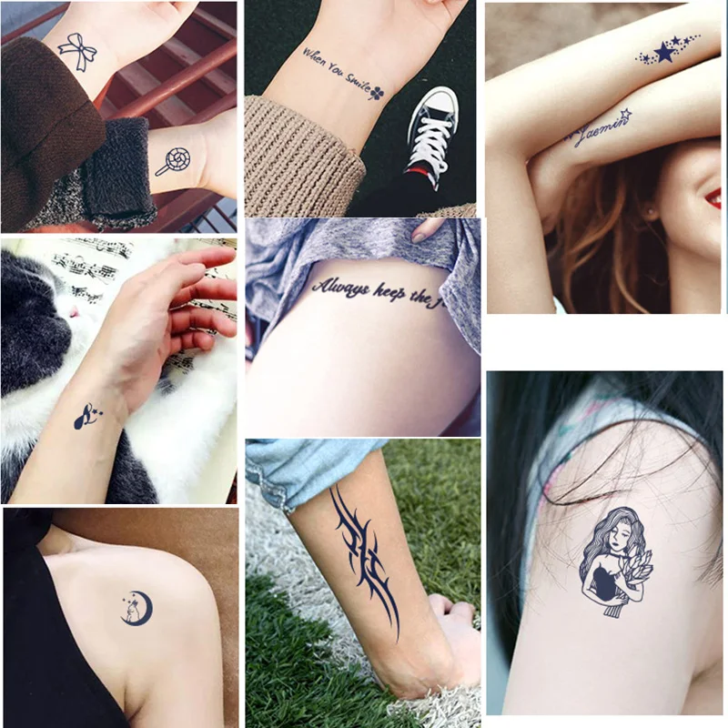 Временные татуировки с растительным соком, водостойкие, прочные, травяные, садовые, синие татуировки, модные, женские, для девушек, на ногах, на груди, для тела
