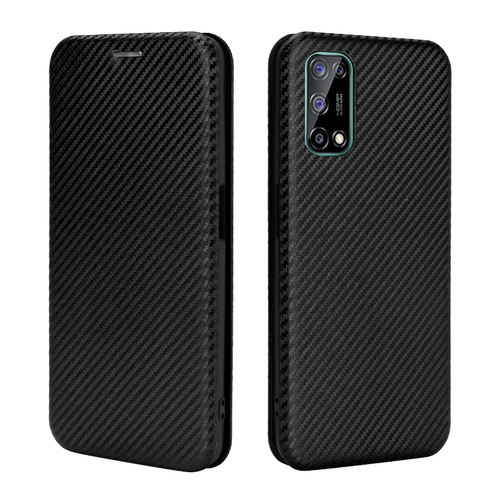 Для Realme V5 чехол из углеродного волокна Флип кожаный чехол для Realme V5 RMX2111 RMX2112 Бизнес магнитной застежкой с откидной крышкой с отделением для карт с тонкий Чехол