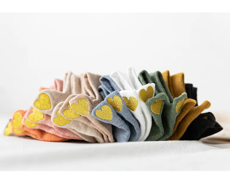 Весна Лето Харадзюку стиль женские носки хлопок с вышитым сердцем K...
