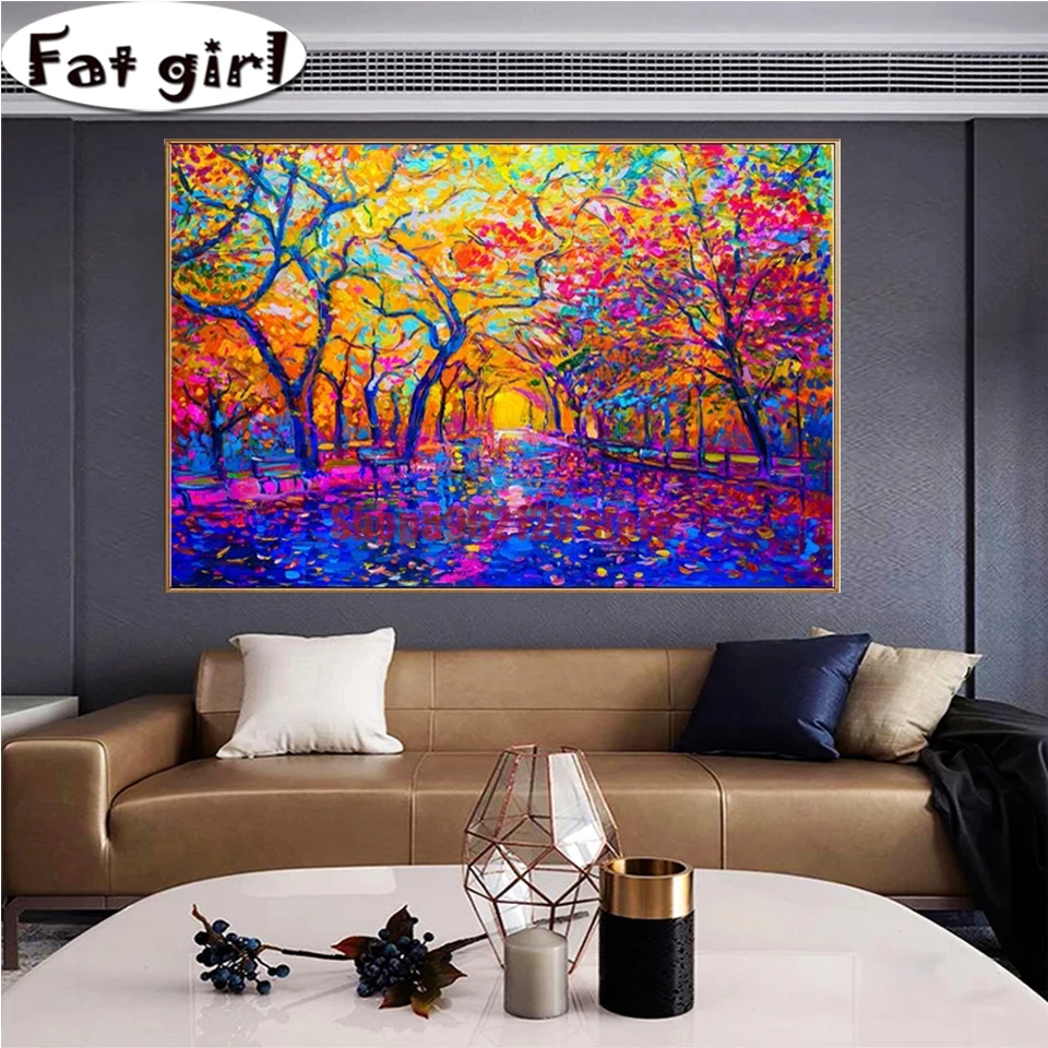 Красочное абстрактное 5D Древо жизни, сделай сам, алмазная живопись, плакат, вышивка крестиком, мозаика, квадратная, круглая, дрель, современное настенное искусство, вышивка